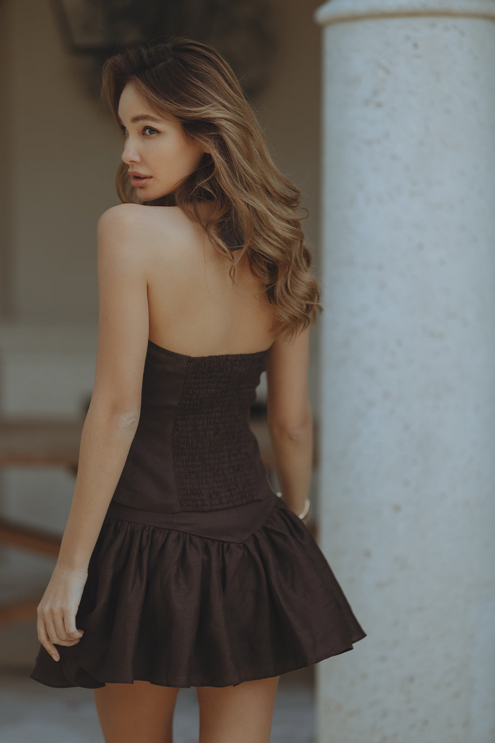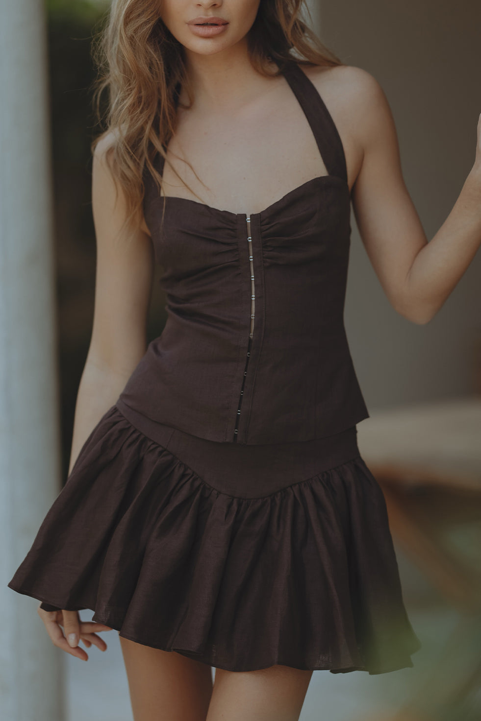 AMORETTE LINEN MINI SKIRT - CHOCOLATE