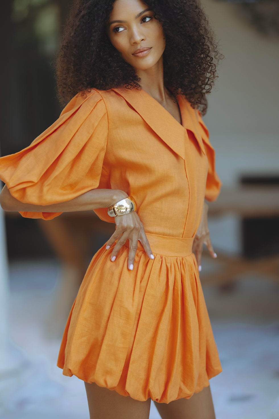 ROMARA LINEN MINI DRESS - STONE