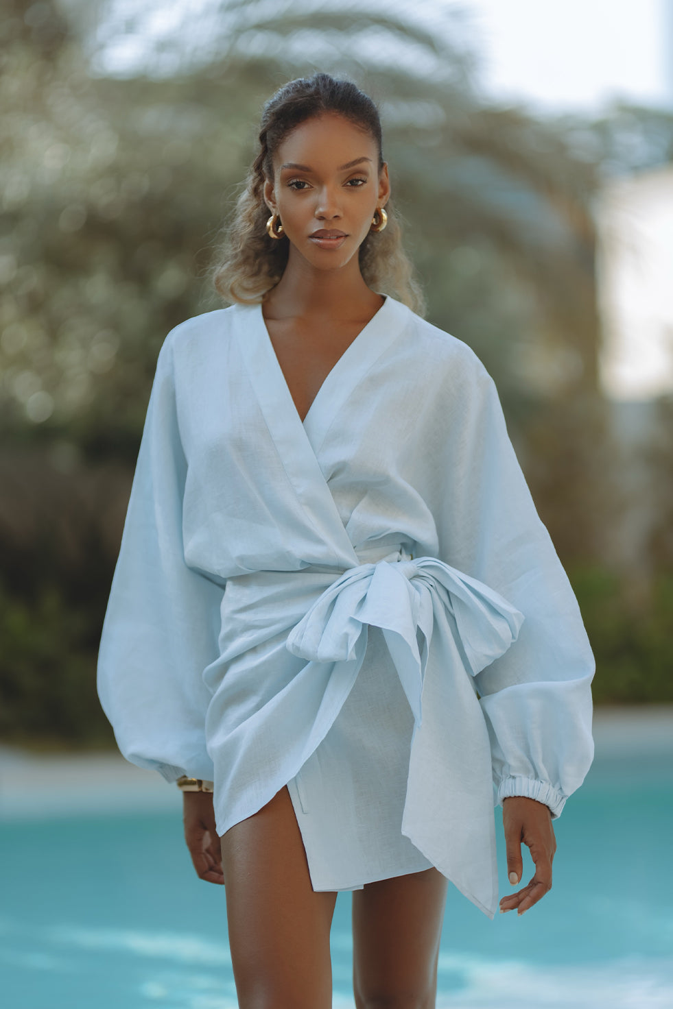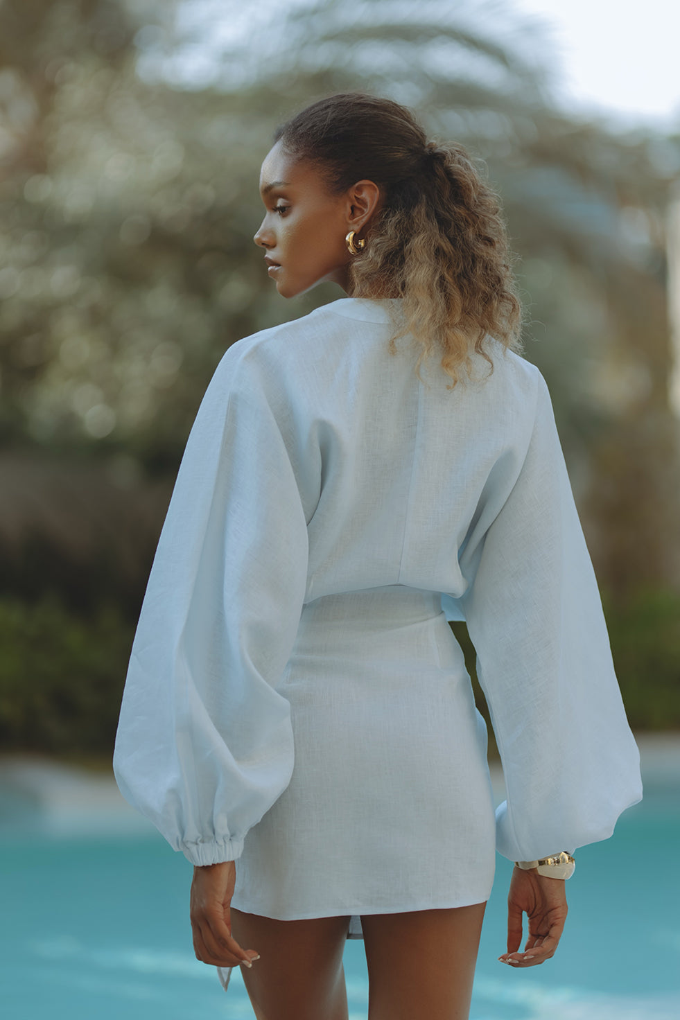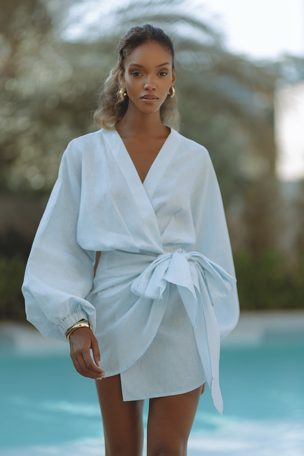 ROMARA LINEN MINI DRESS - SKY BLUE