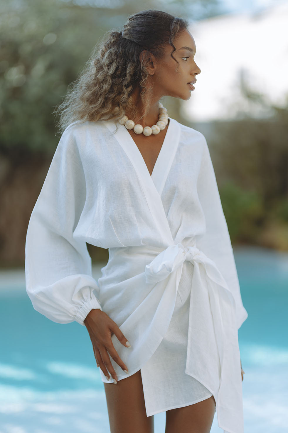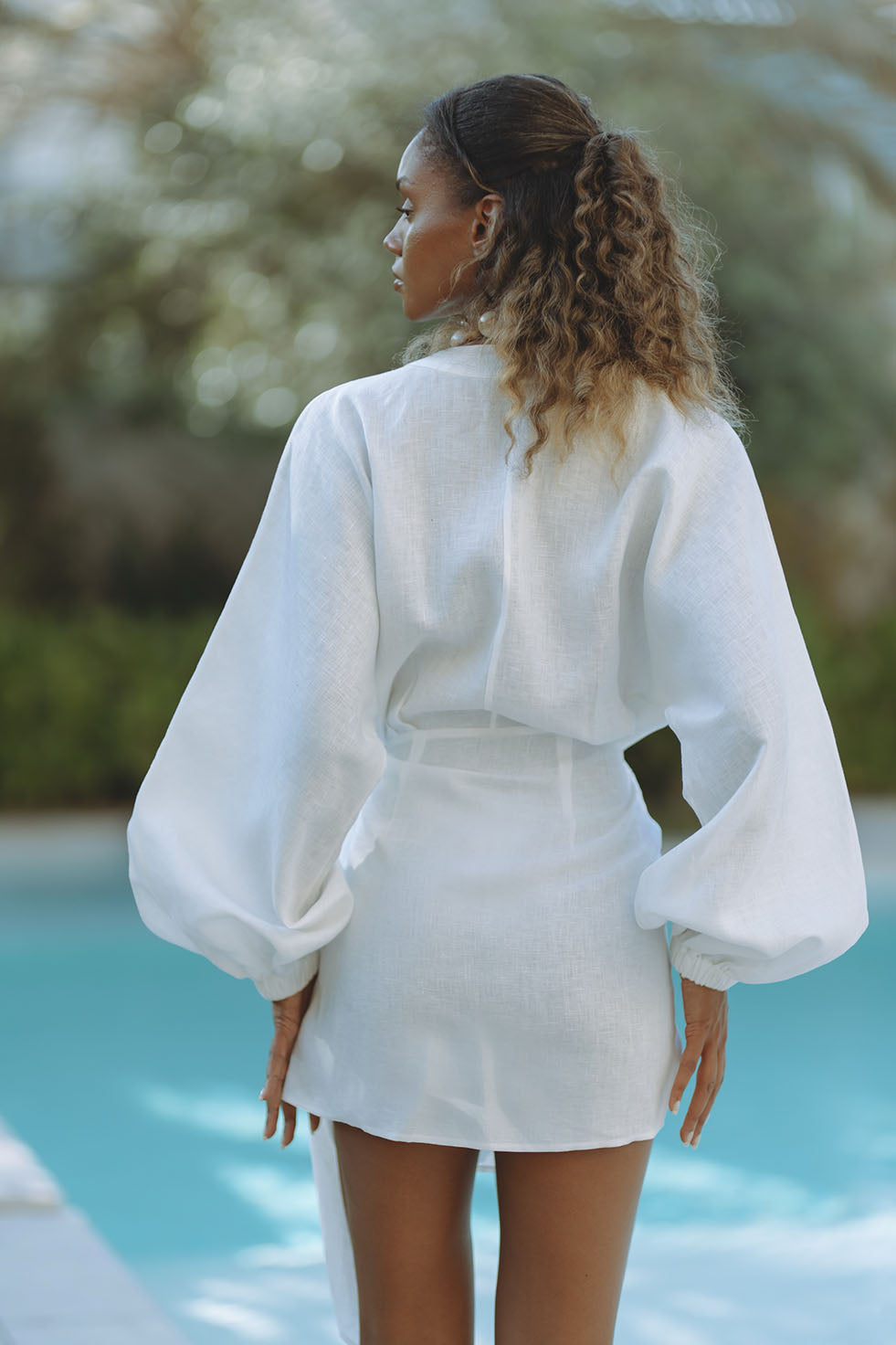 ROMARA LINEN MINI DRESS - ORCHID WHITE