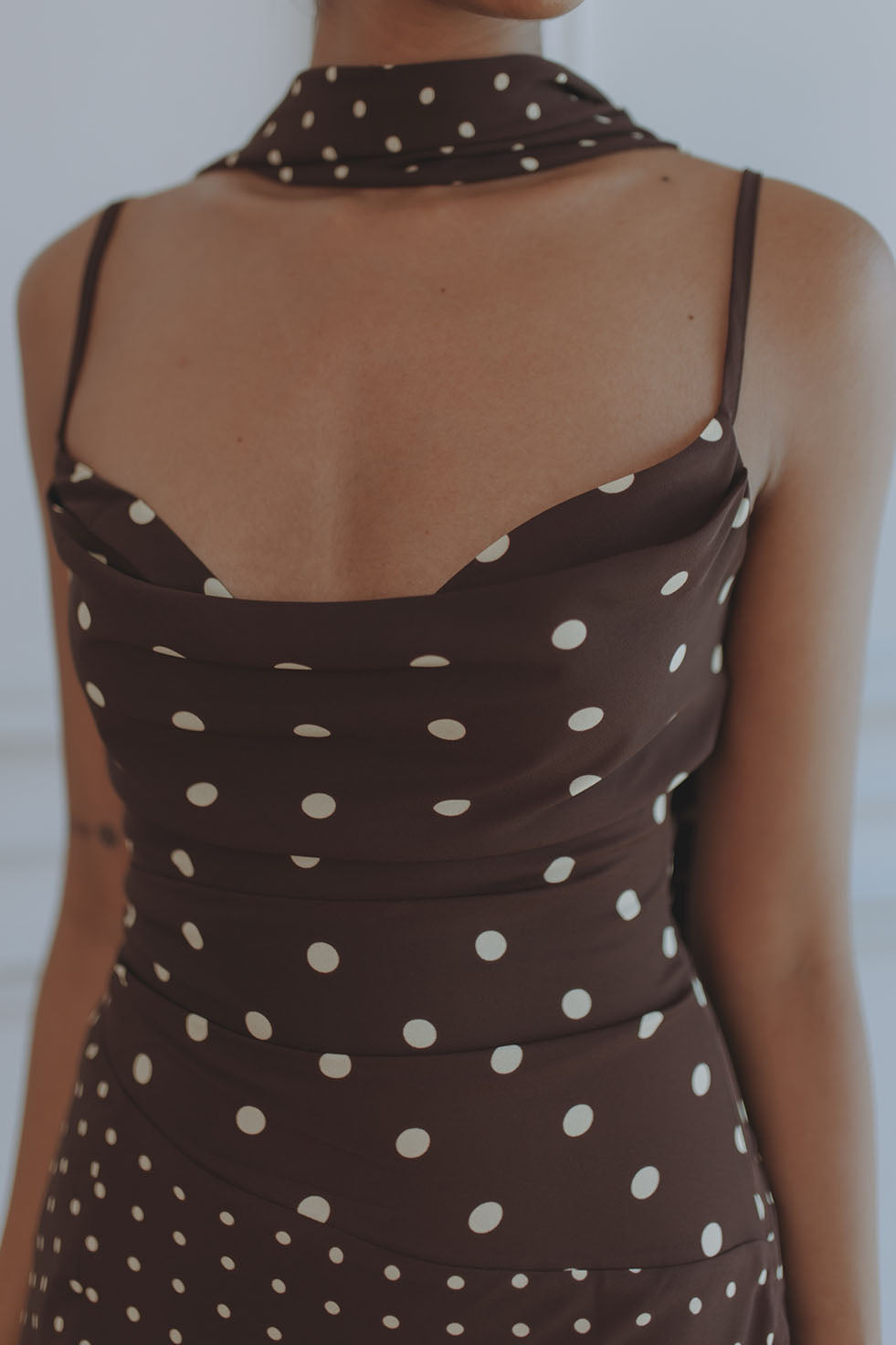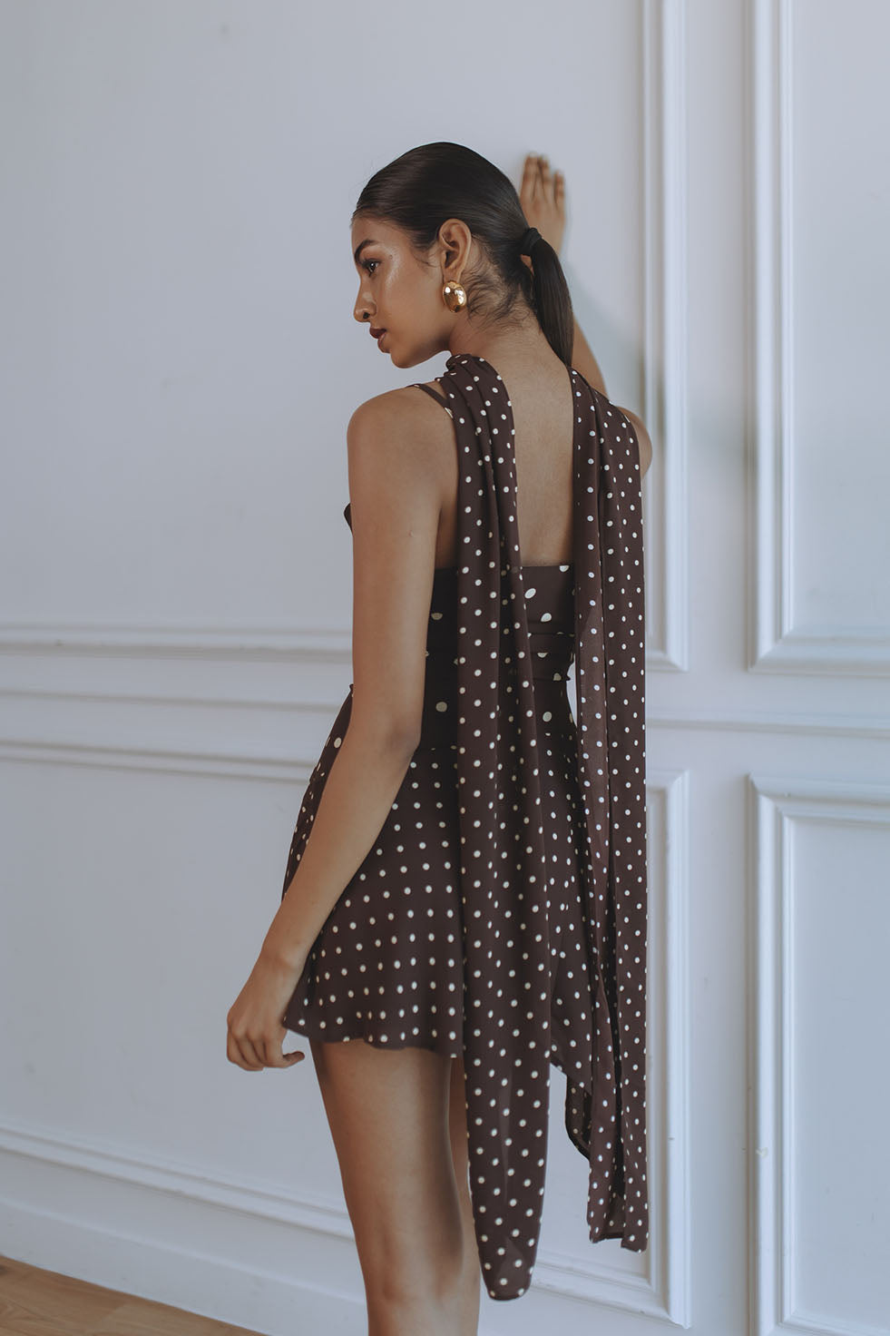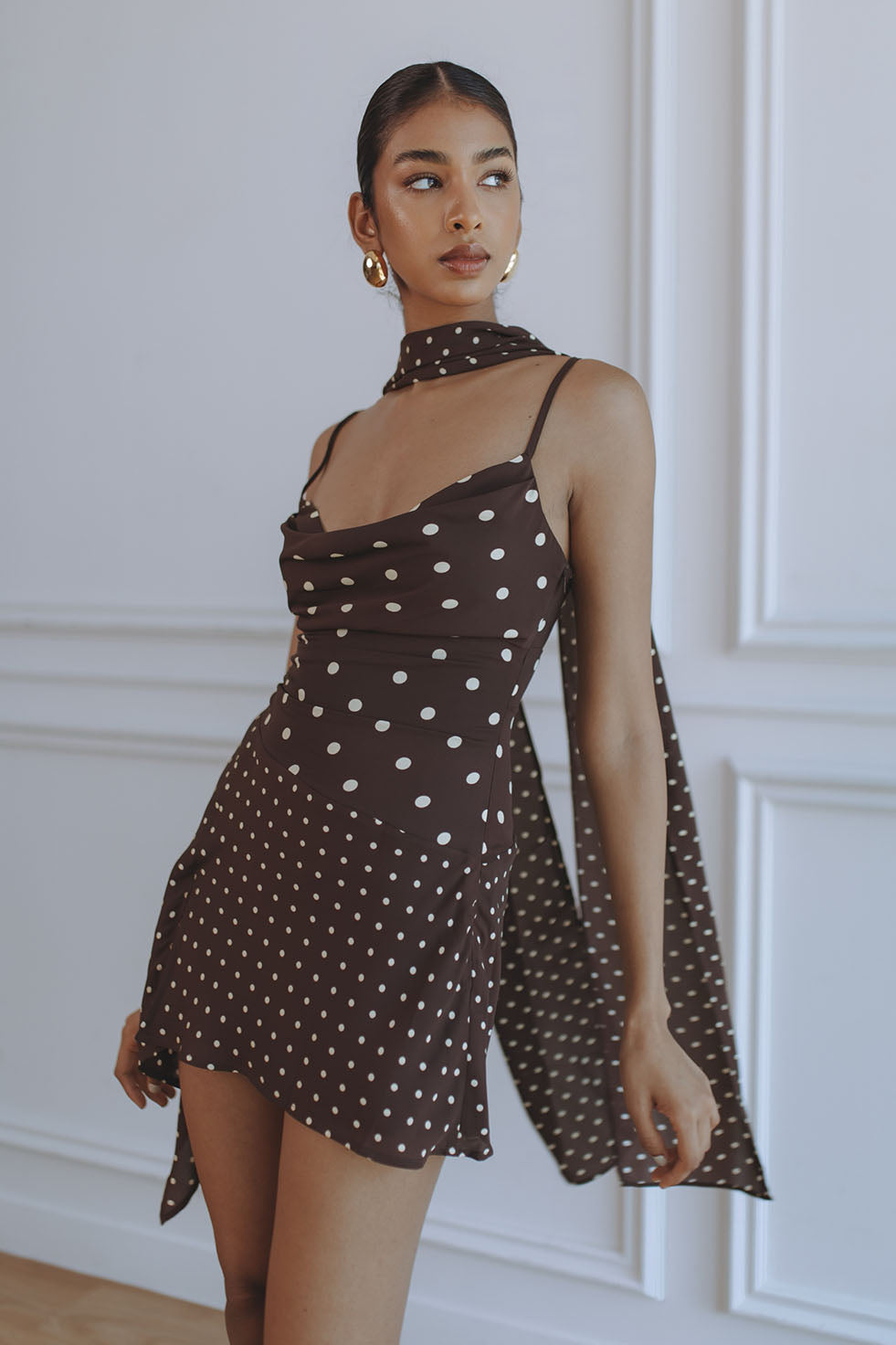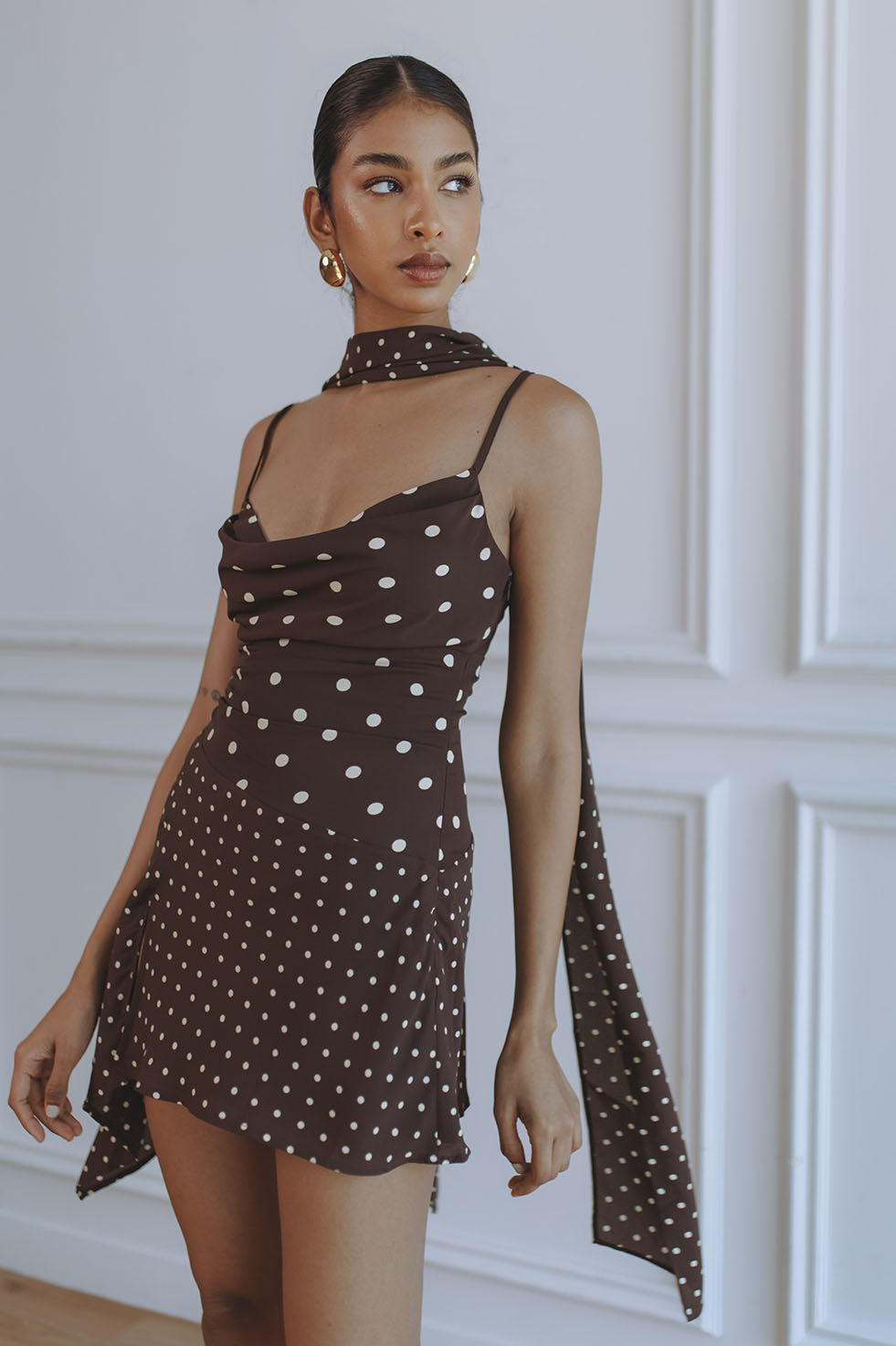 ALORA SCOOP NECK MINI DRESS - CHOC/LEMON POLKA