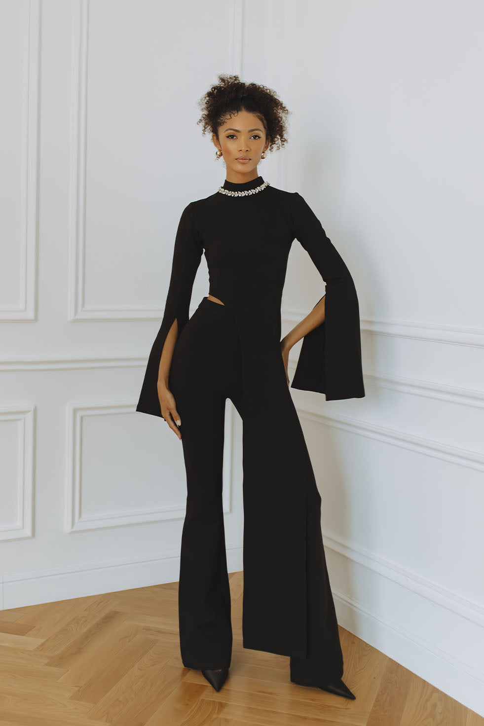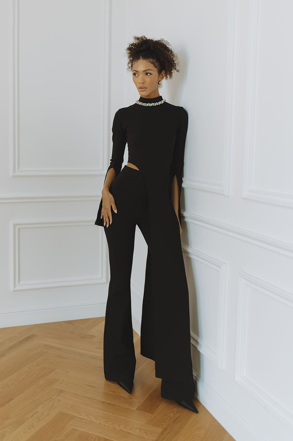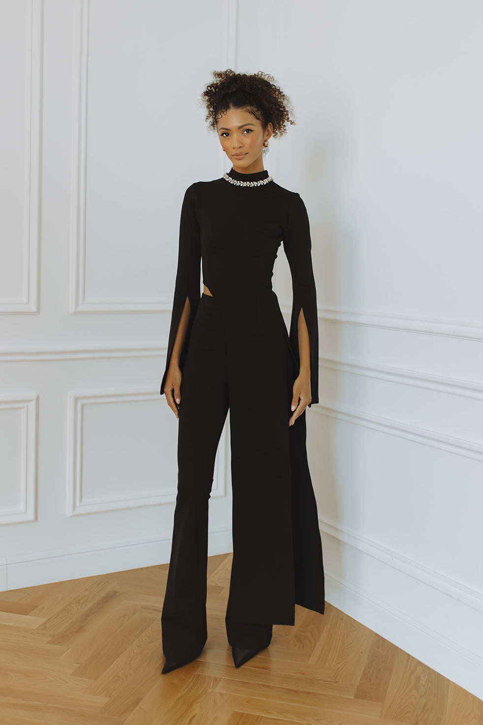MARTINA SLEEVED KNIT MAXI DRESS - BLACK