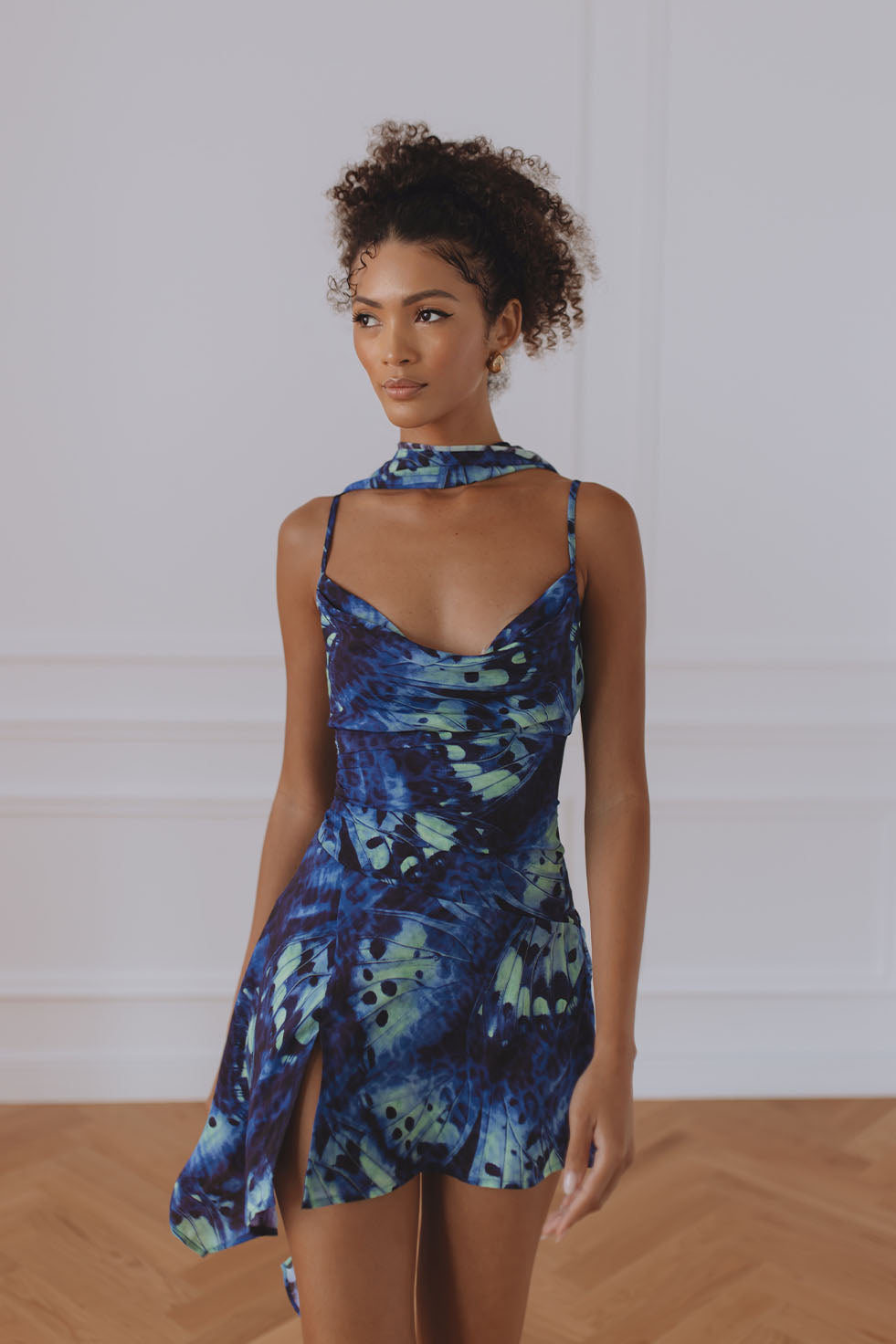 ALORA SCOOP NECK MINI DRESS - ELIANA BLUE