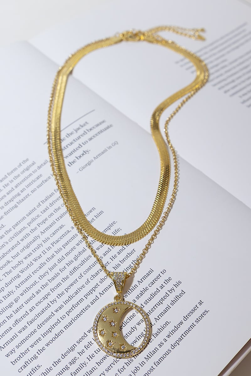 GOLD PLATED LAYERED MOON NECKLACE