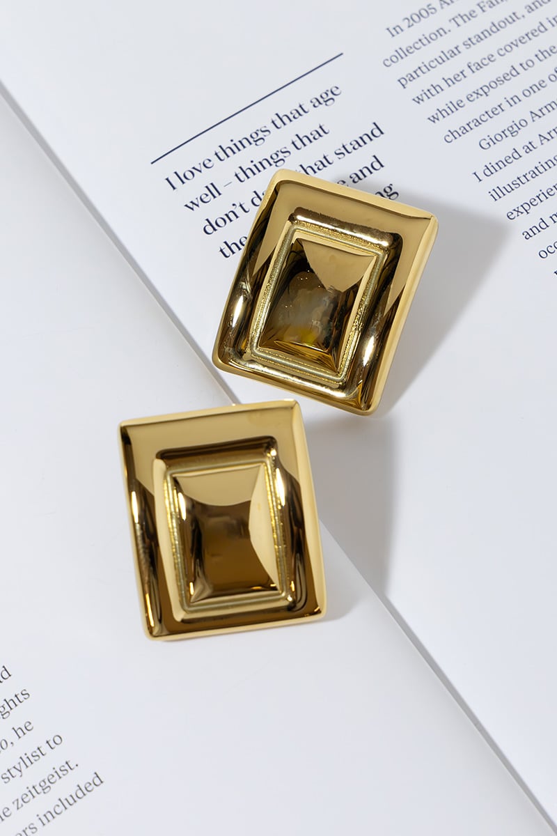 GOLD PLATED RECTANGULAR EARRINGS