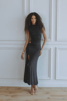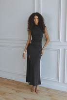 AVANNI JERSEY HIGH NECK MAXI DRESS - GRANITE