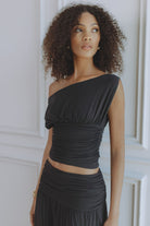 AVANNI OFF SHOULDER RUCHED TOP - GRANITE