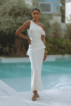 Chic and effortlessly elegant, the Darcy Satin Top is crafted in a soft off white satin that glides beautifully against the skin. Featuring a modern one-shoulder neckline with delicate side ties, it drapes fluidly for a refined finish. A self-tie belt at the back cinches the waist, allowing you to create a flattering, feminine silhouette. Perfect for pairing with our Darcy maxi skirt, this versatile piece transitions seamlessly from day to evening.