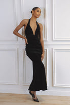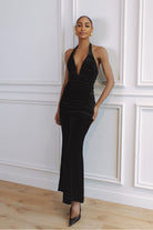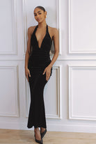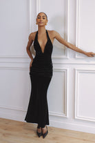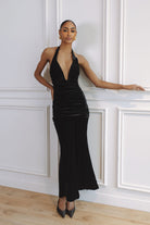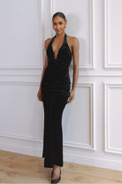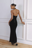 ELVIRA VELVET HALTER MAXI DRESS - BLACK