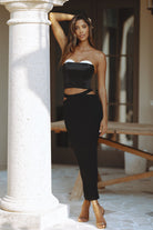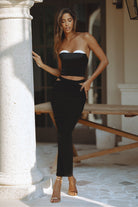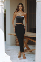 Embrace a touch of allure with the Florentina Skirt. This piece redefines sophistication with its fitted waist and seductive side cutout, accentuating the natural curves. Its sleek black fabric flows effortlessly to a modest length, ensuring a balance of elegance and playful charm. Perfect for an evening out or a special occasion, this skirt promises to turn heads and make a memorable statement. Pair with a bold top for a truly captivating ensemble.