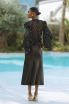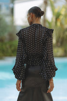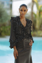 FRILL DETAIL SPOT BLOUSE - BLACK SPOT