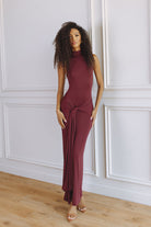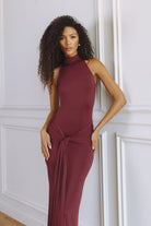 ISADORA MAXI TIE FRONT DRESS - DEEP PLUM