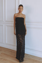 KINERA STRAPLESS LACE MAXI DRESS - BLACK