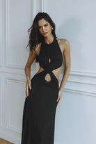 ROSSA CUT OUT HALTER MAXI DRESS - BLACK