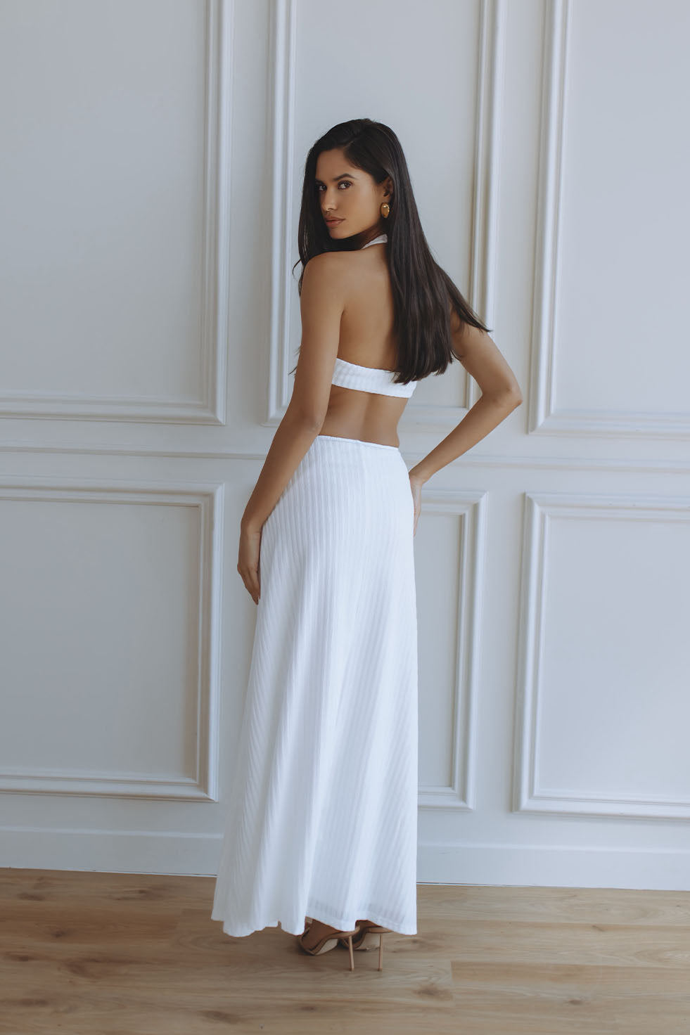 ROSSA CUT OUT HALTER MAXI DRESS - WHITE