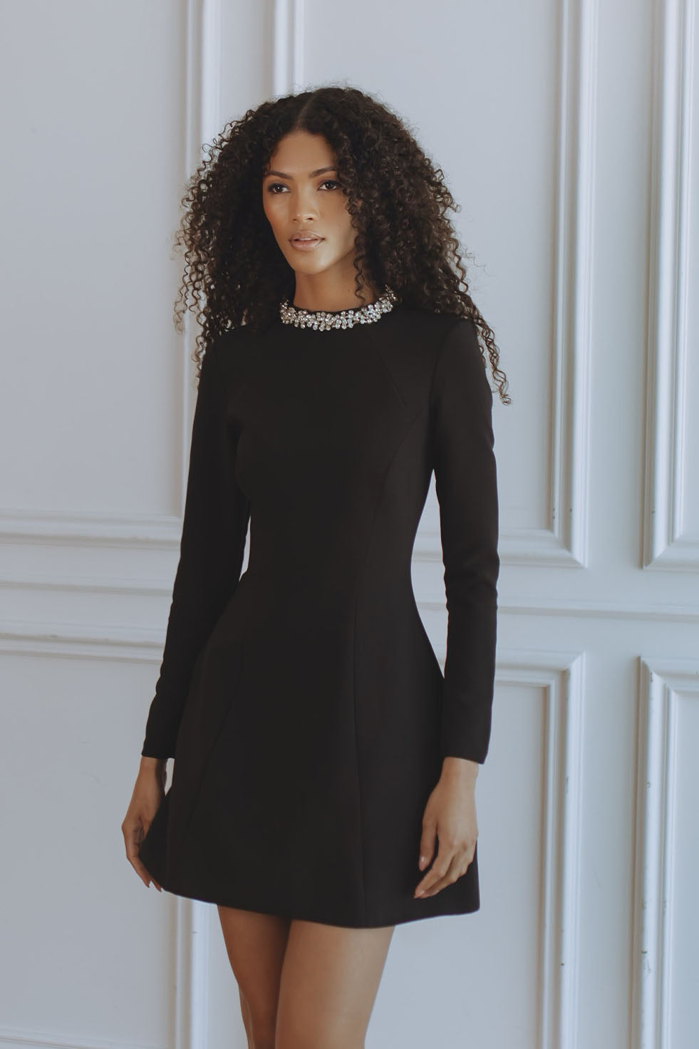 DELPHI LONG SLEEVE HOURGLASS MINI DRESS - BLACK