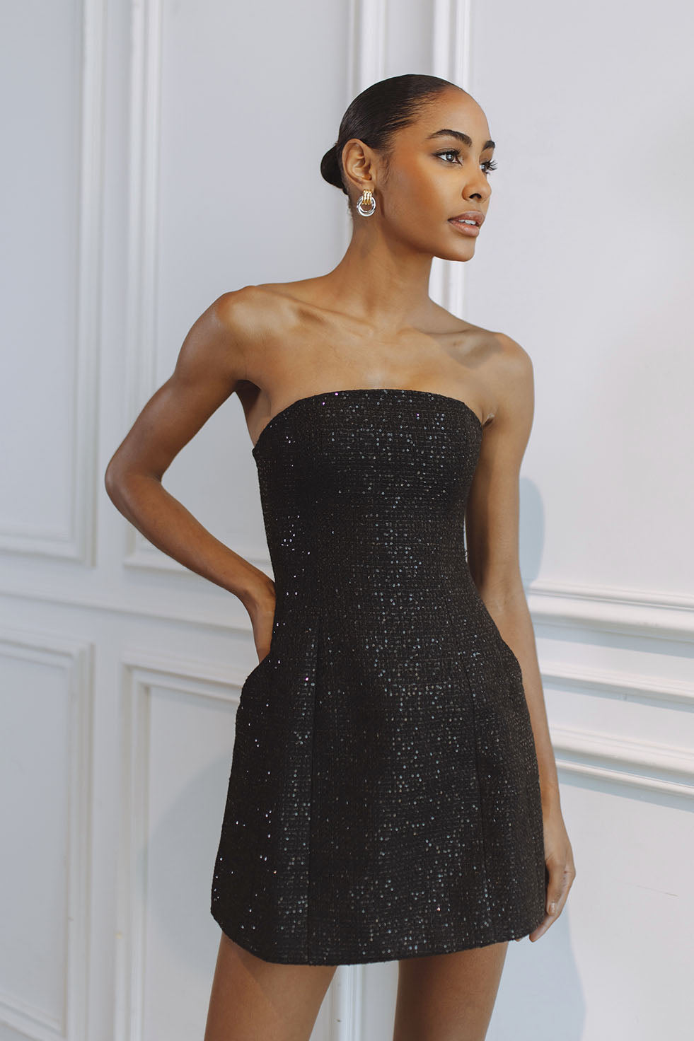 EIDA HOURGLASS SEQUIN MINI DRESS - BLACK