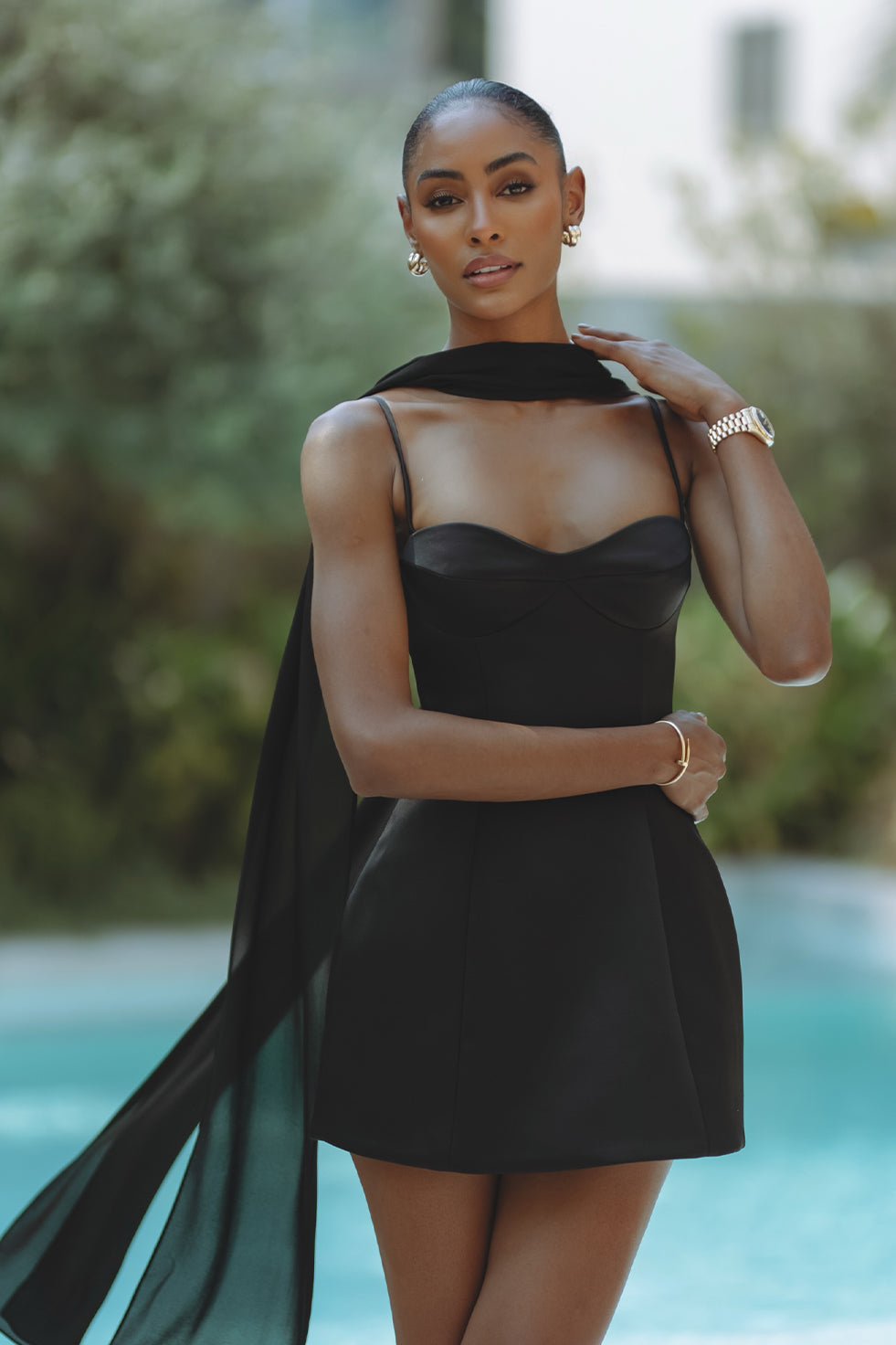 AUDREY HOURGLASS MINI DRESS - BLACK