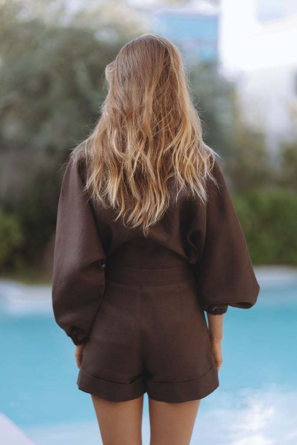 MAXENA LINEN PLAYSUIT - BITTER CHOCOLATE