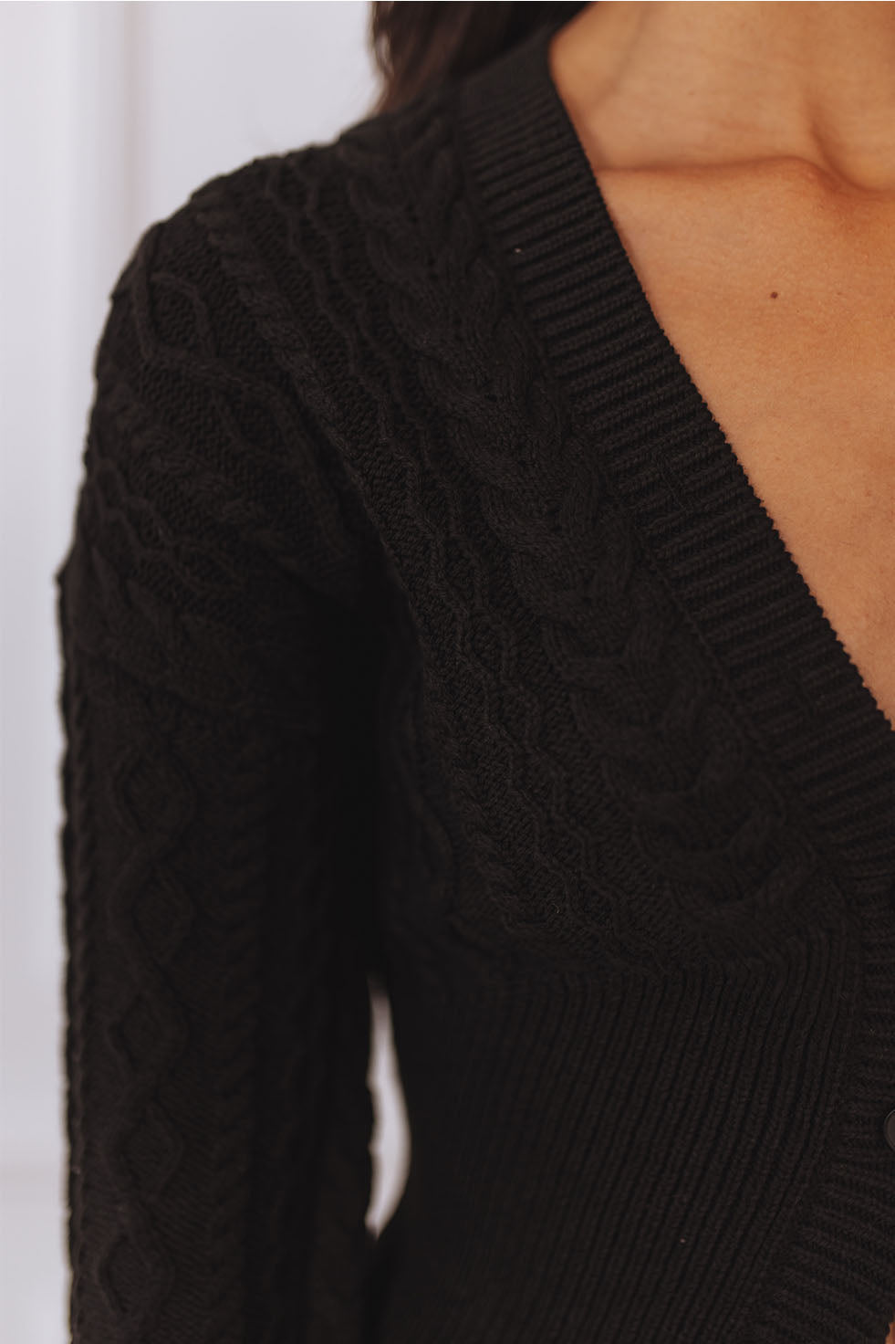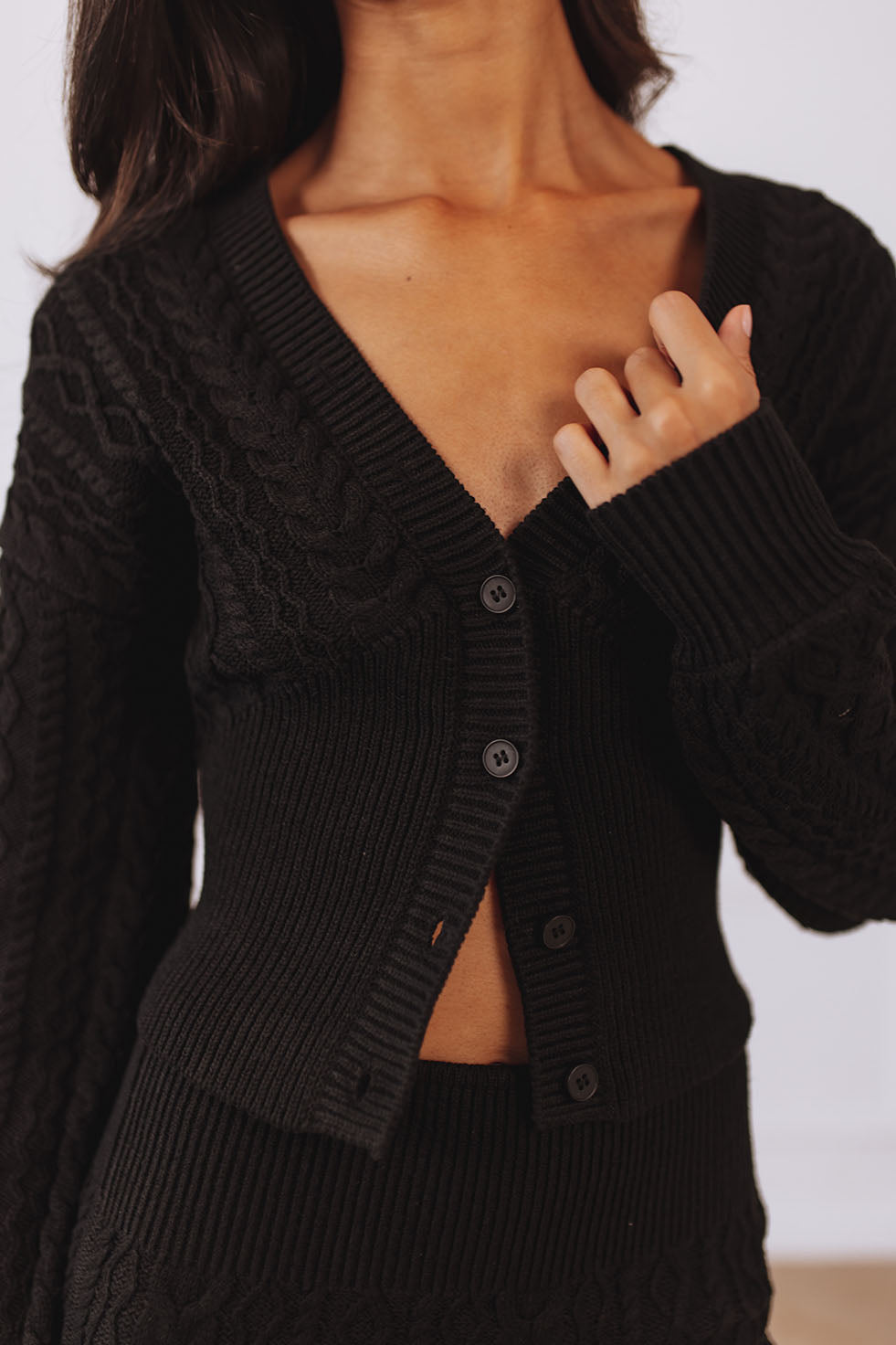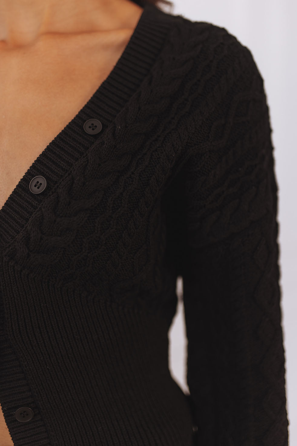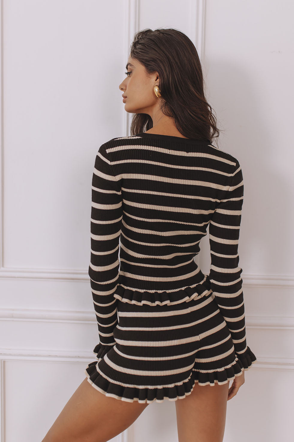 DONNA LONG SLEEVE KNIT TOP - BLACK/CREAM