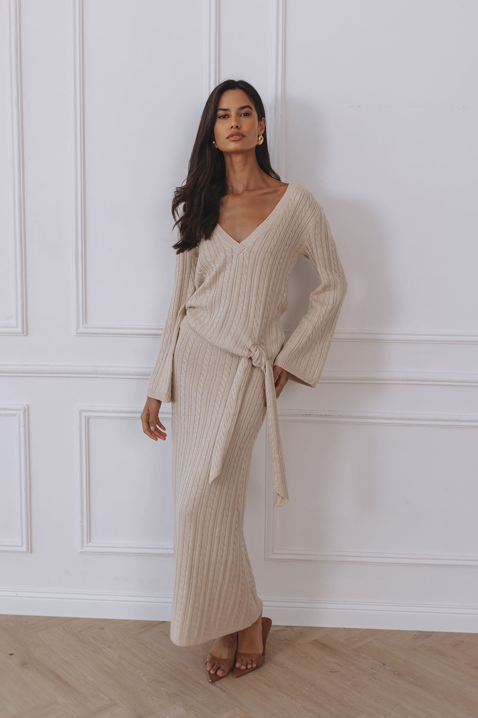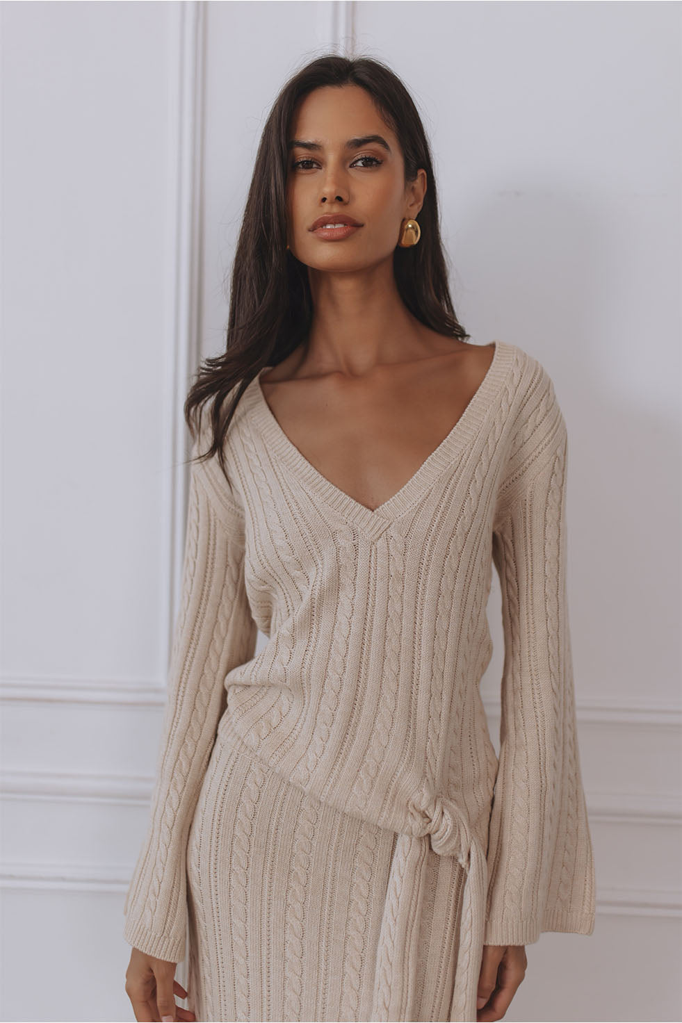 OPHELIA SLEEVED KNIT TOP - CREAM