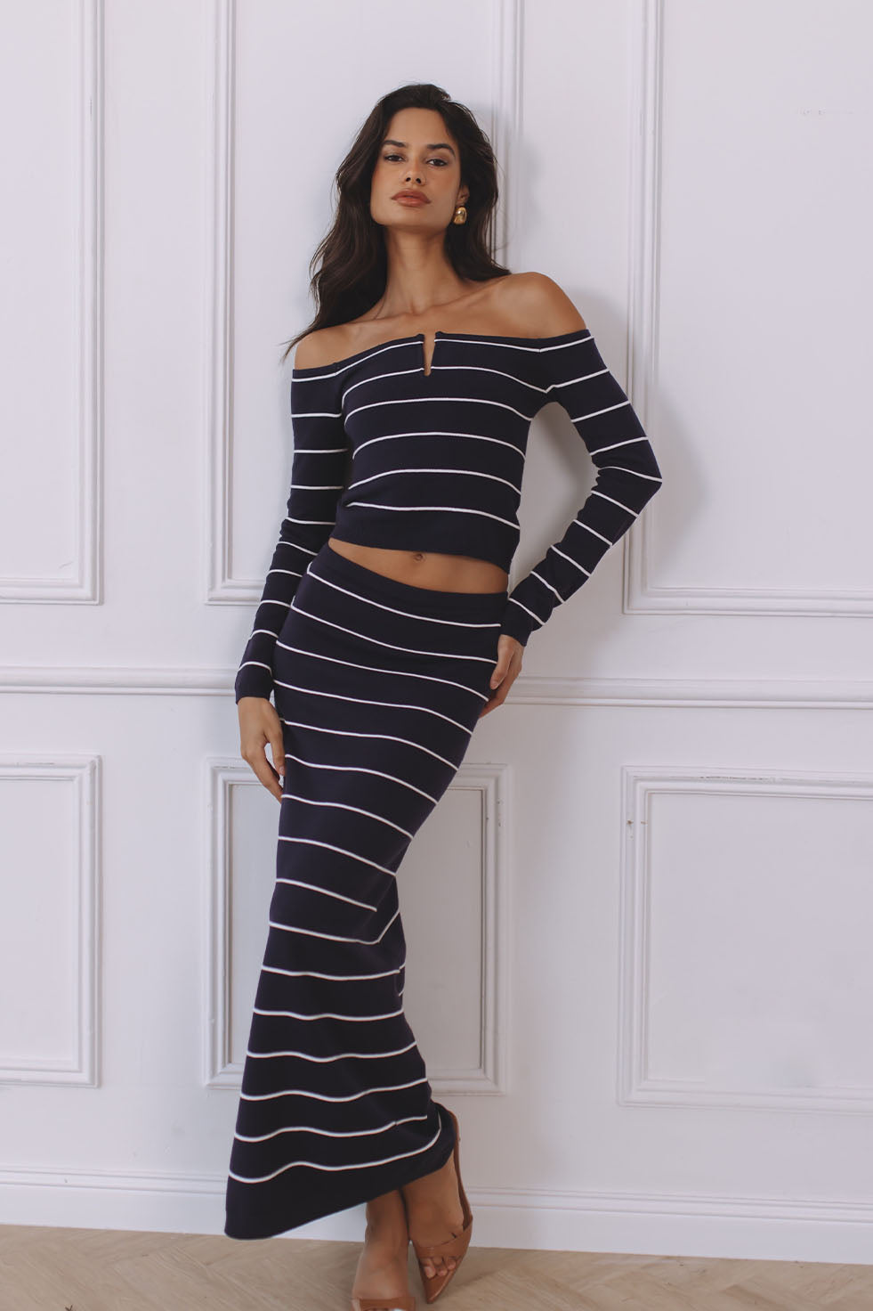 ELEONORA SLEEVED KNIT TOP - NAVY STRIPE