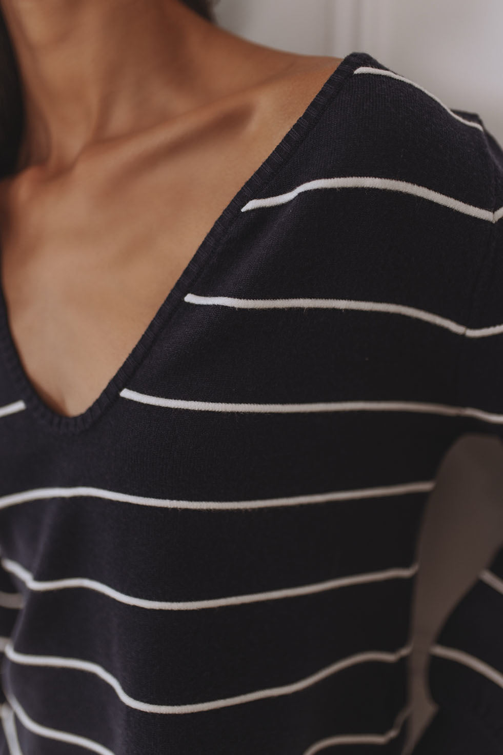 ANYA SLEEVED KNIT TOP - NAVY STRIPE