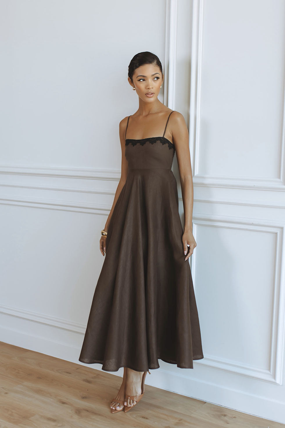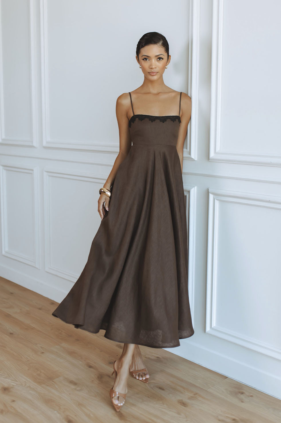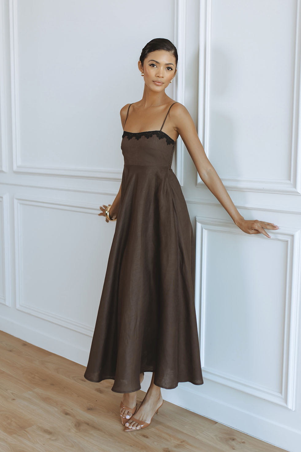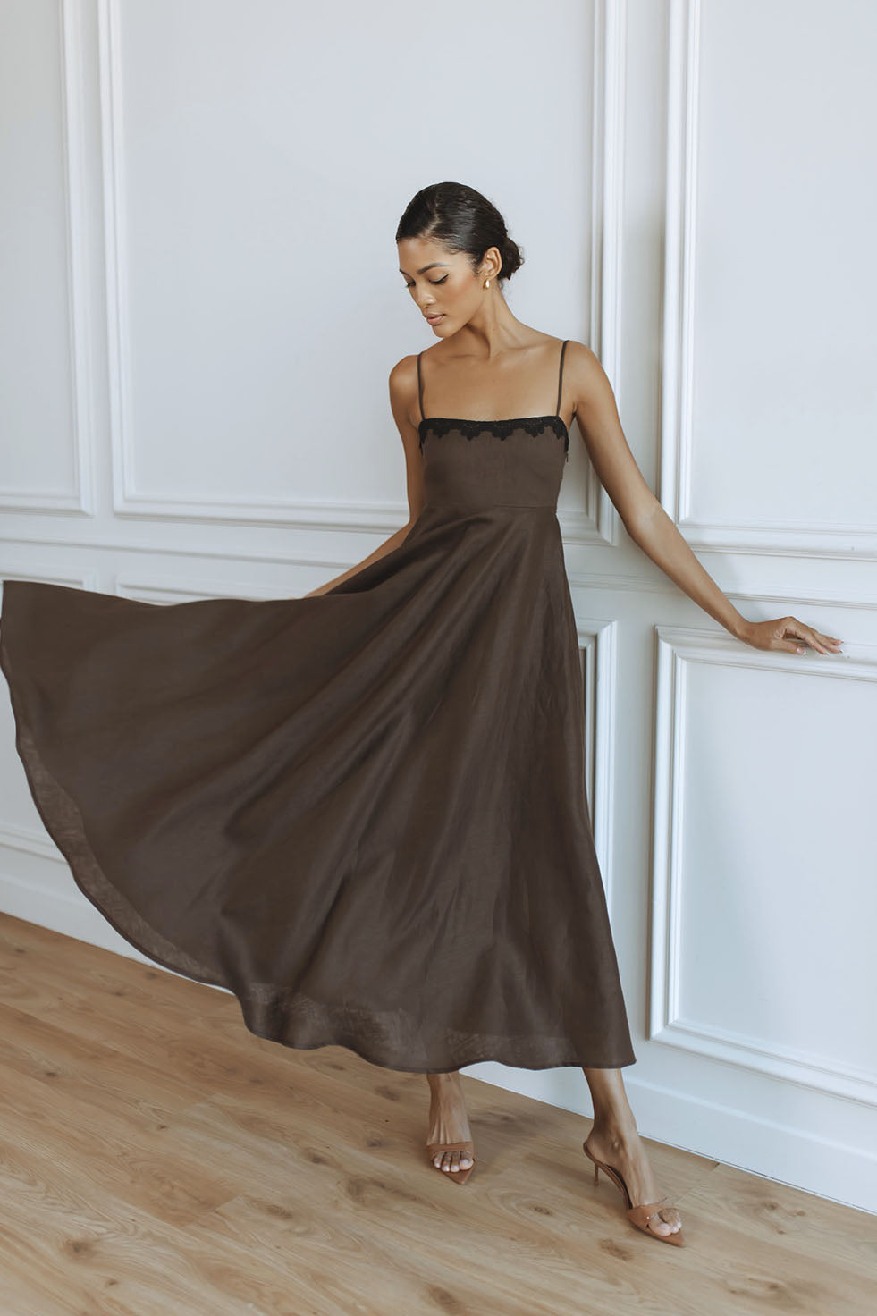 ADERIA LACE DETAIL MAXI DRESS - DARK CHOCOLATE