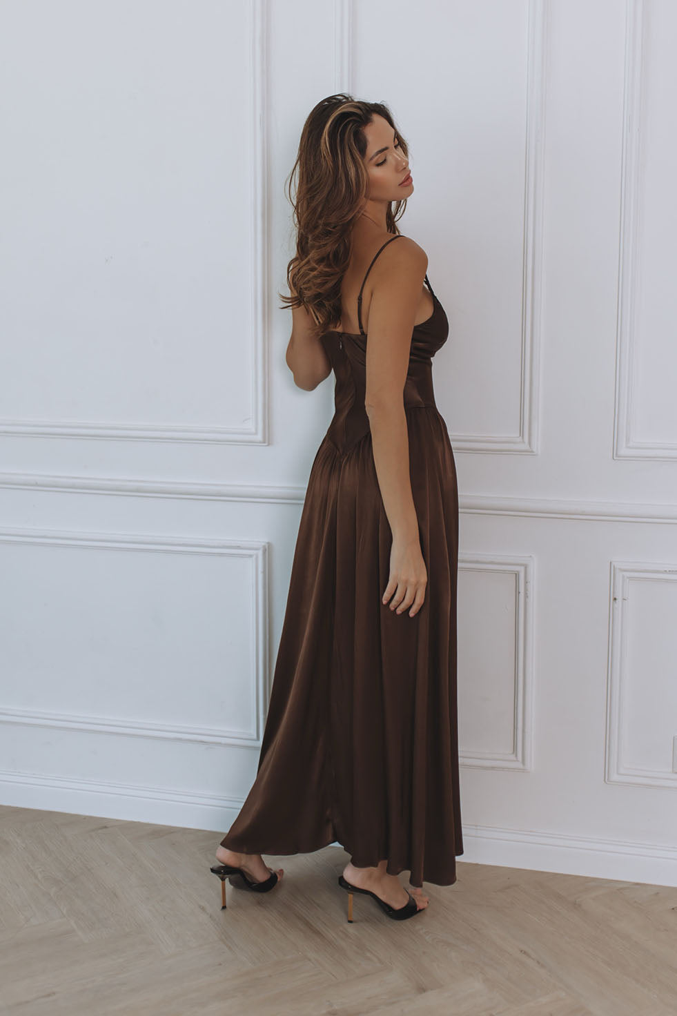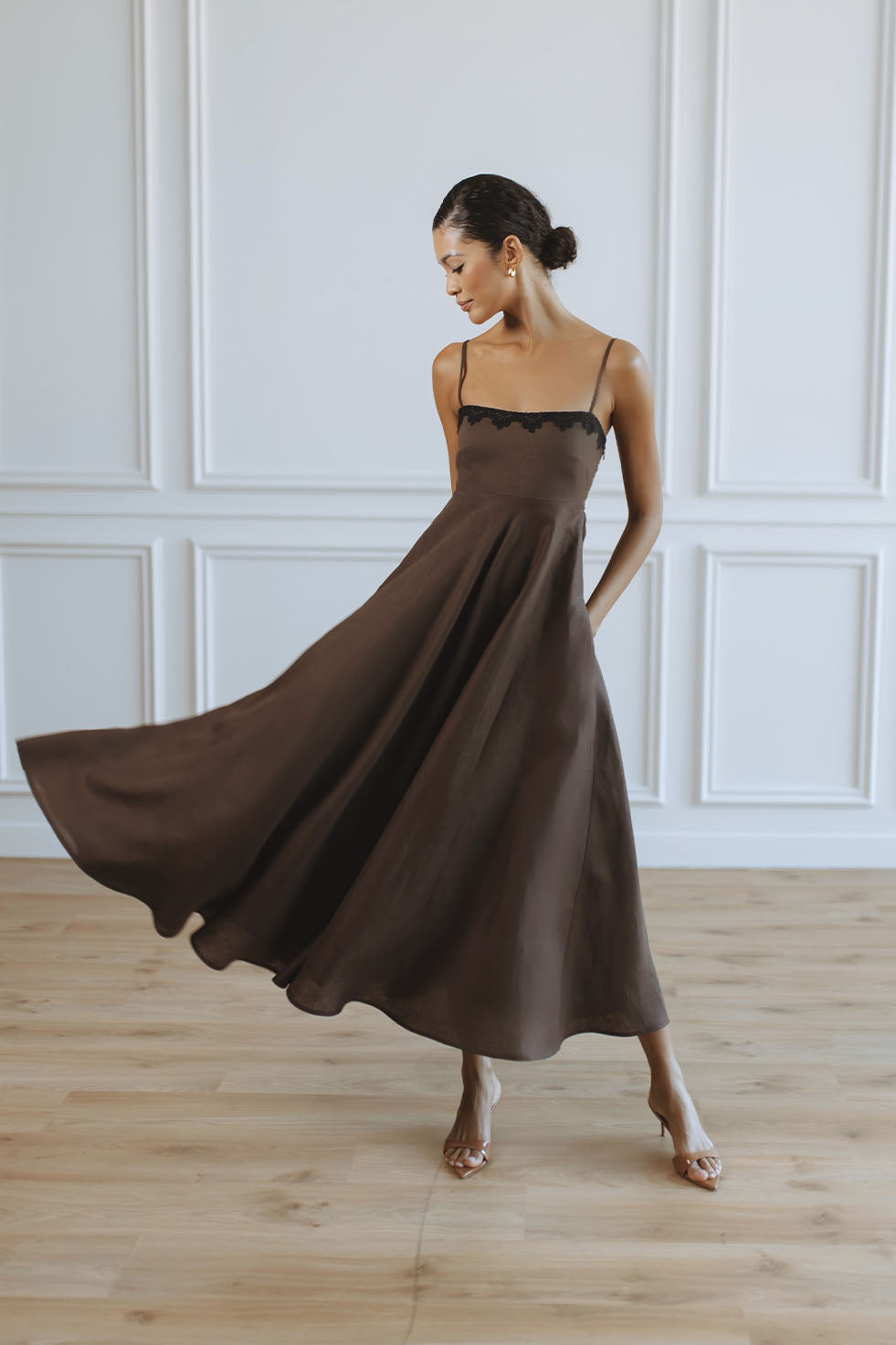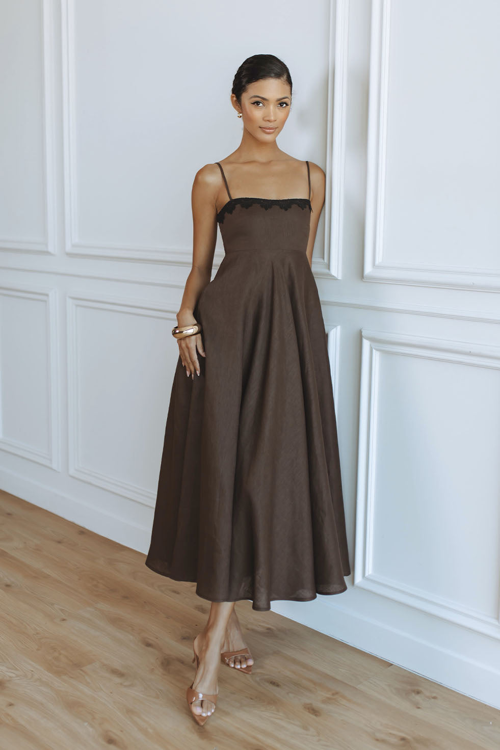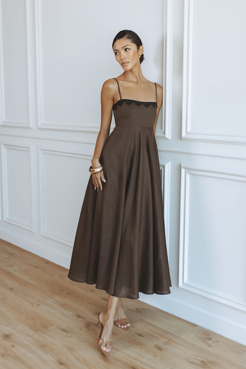 ADERIA LACE DETAIL MAXI DRESS - DARK CHOCOLATE