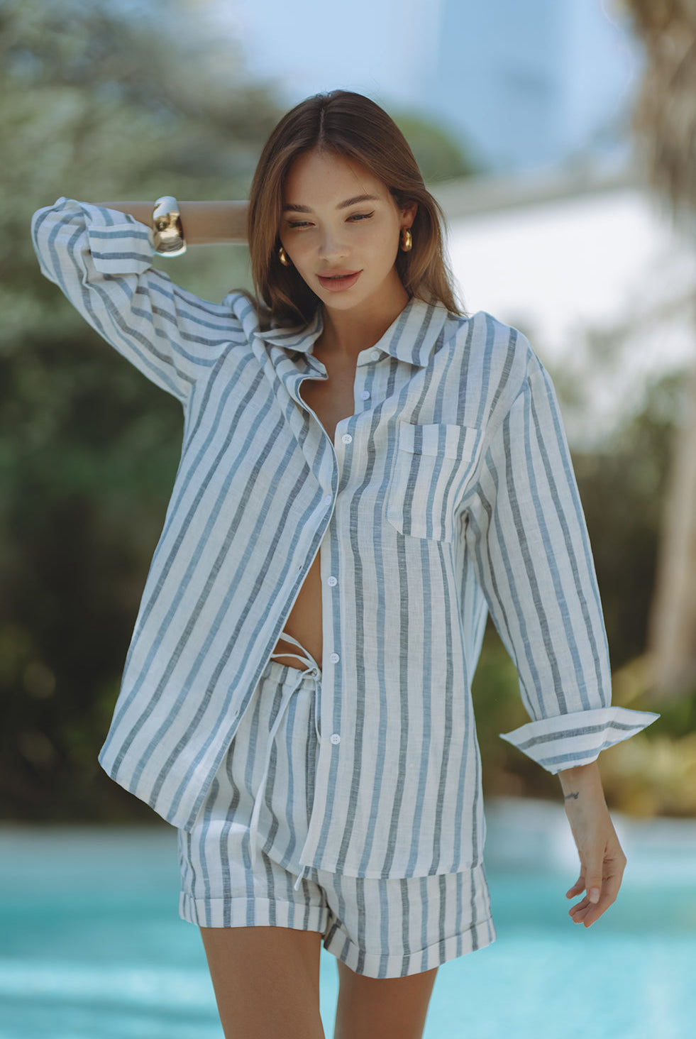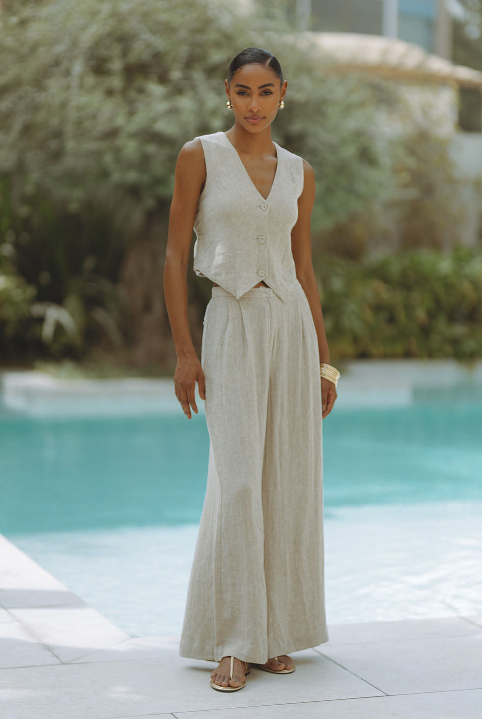 Our linen outfits for summer are curated to help you stay chic and comfortable in the heat, with breathable designs that exude laid-back luxury. From structured silhouettes to soft, flowing styles, these pieces are ideal for beach getaways, city strolls, or garden parties. Pair a linen shirt dress with sandals for a relaxed daytime look, or style a linen midi dress with bold accessories for an evening out.