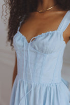 SANCIA LINEN CORSET MIDI DRESS - SKY BLUE