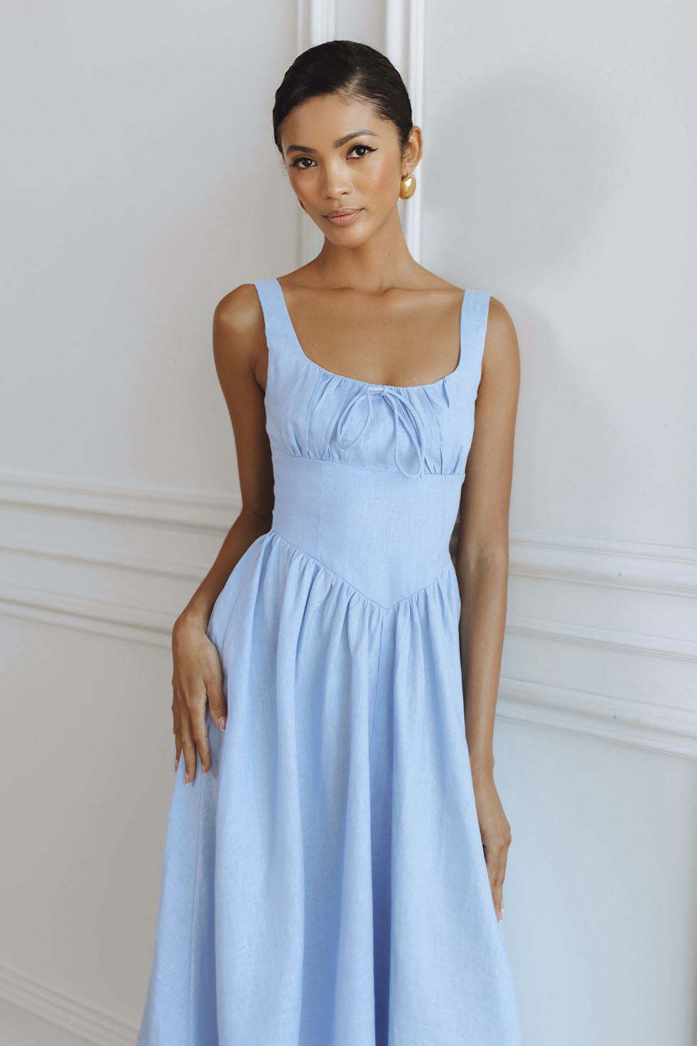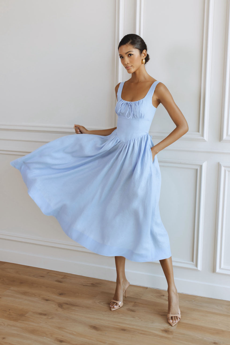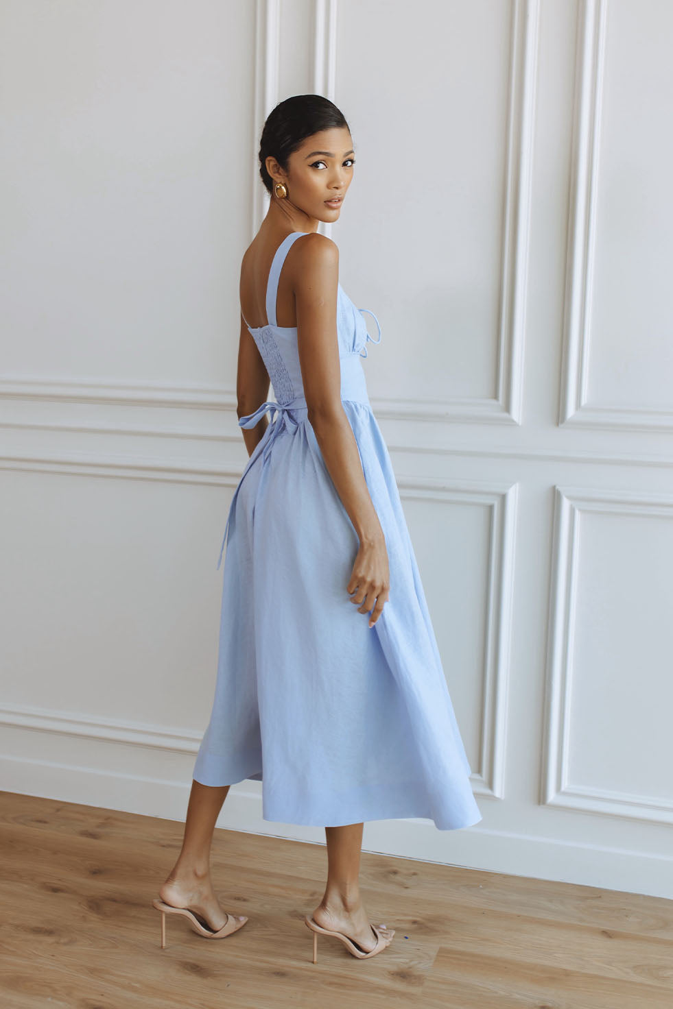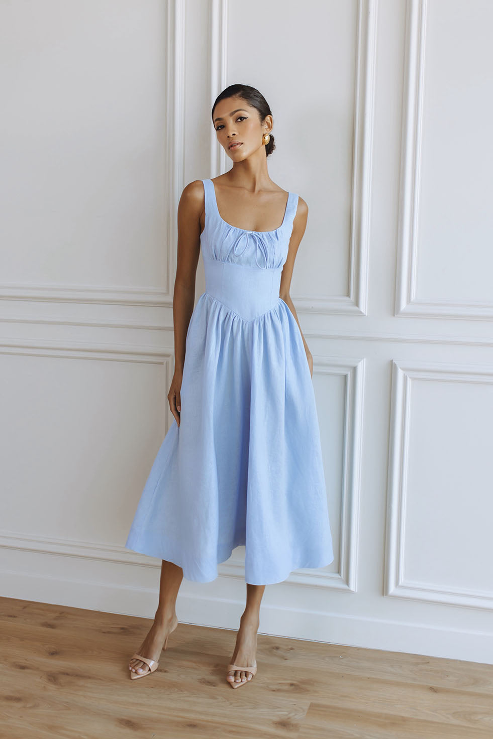 MILAN LINEN MIDI DRESS - SKY BLUE