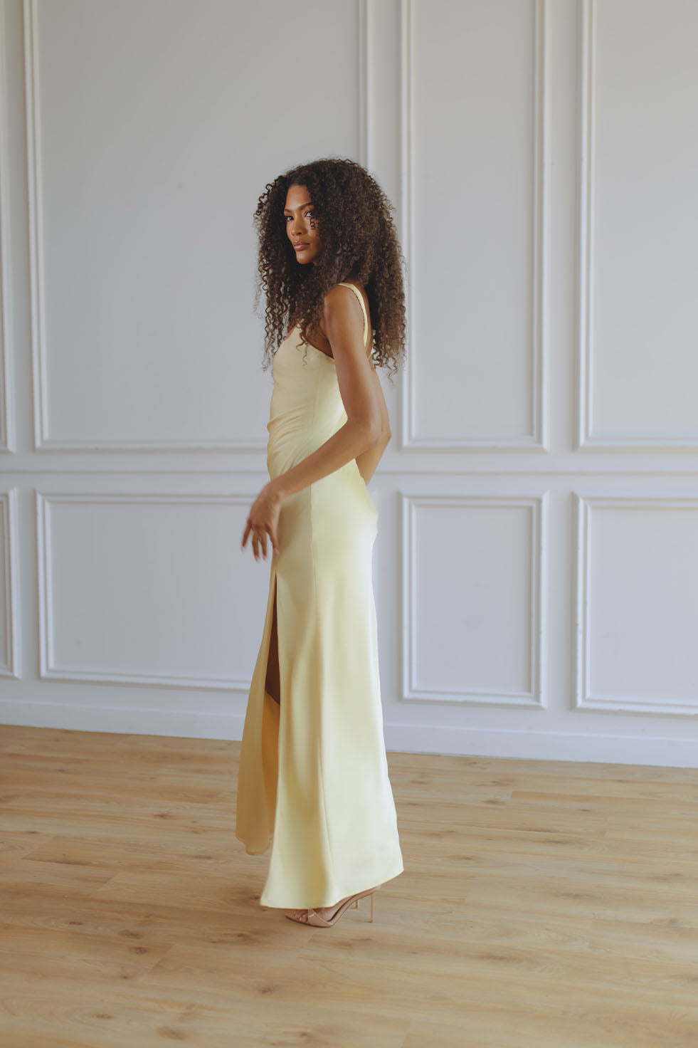 ESME HIGH SPLIT MAXI DRESS - BUTTERMILK