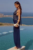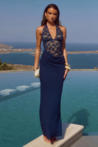 LINA HALTER DRAPED MAXI DRESS - NAVY