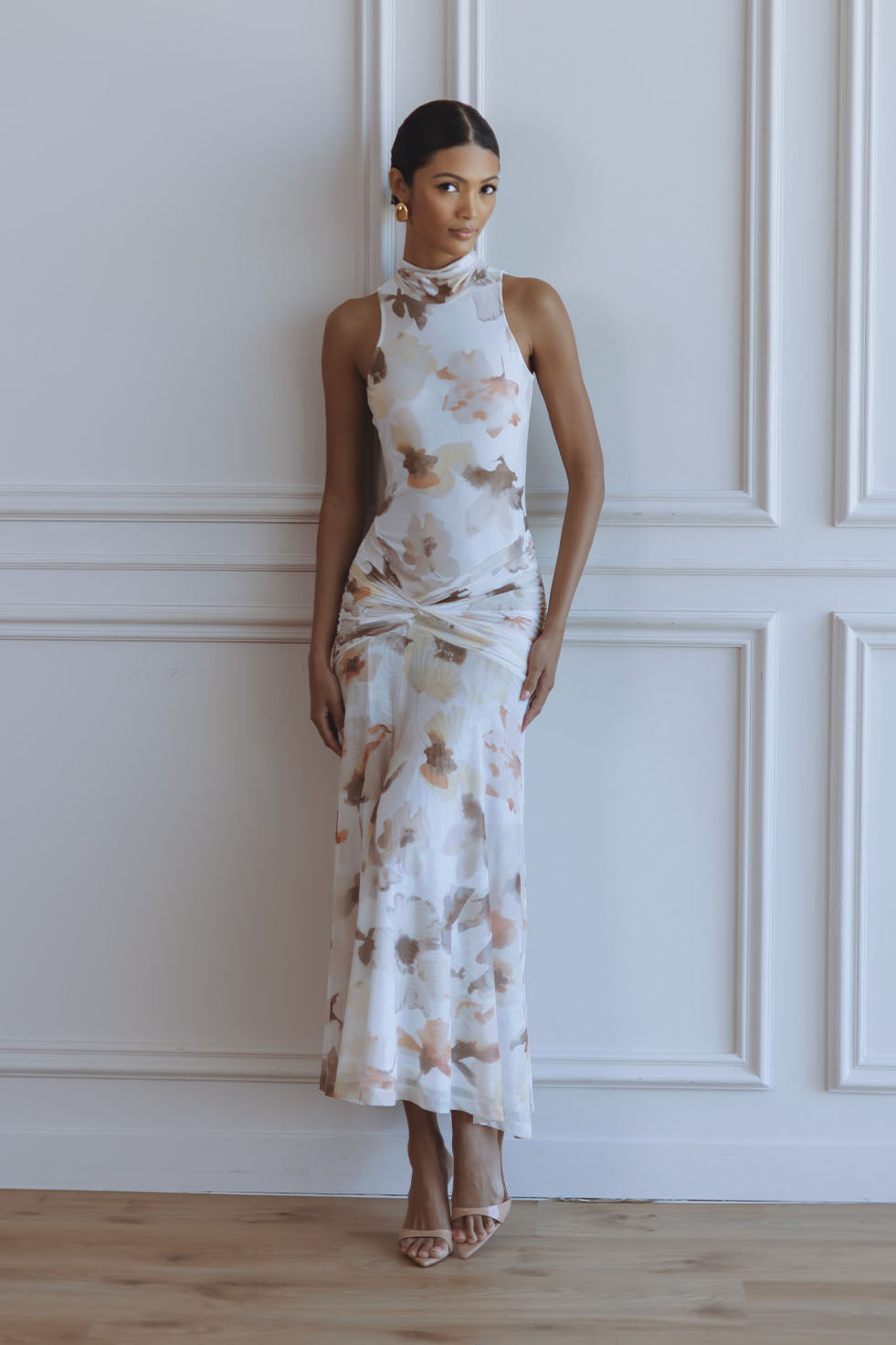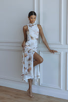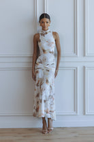 LEANNA MESH MIDI DRESS - IVORY FLORAL
