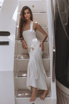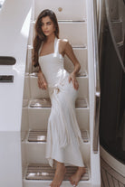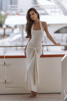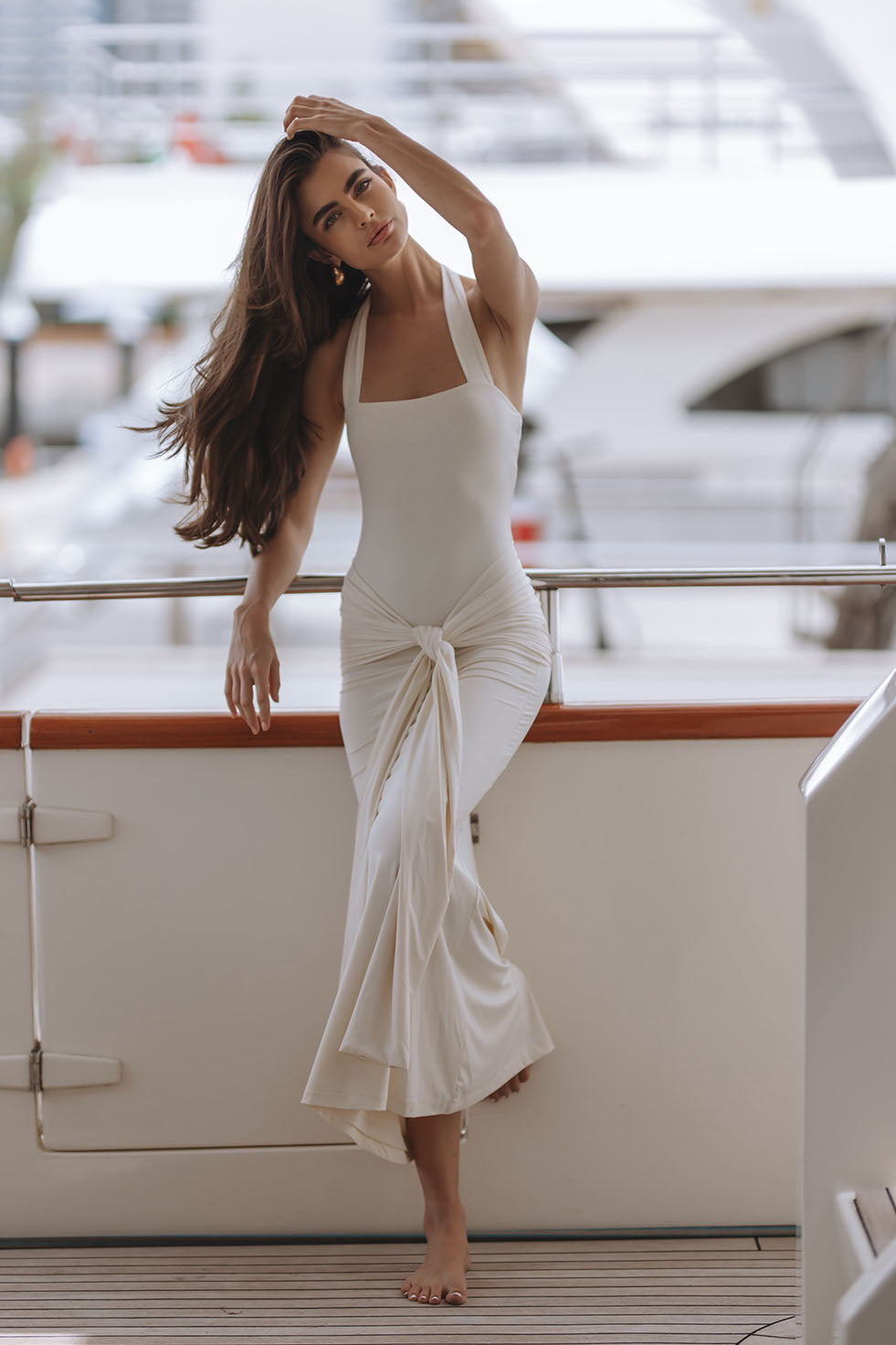 EMILIA TIE FRONT HALTER DRESS - IVORY