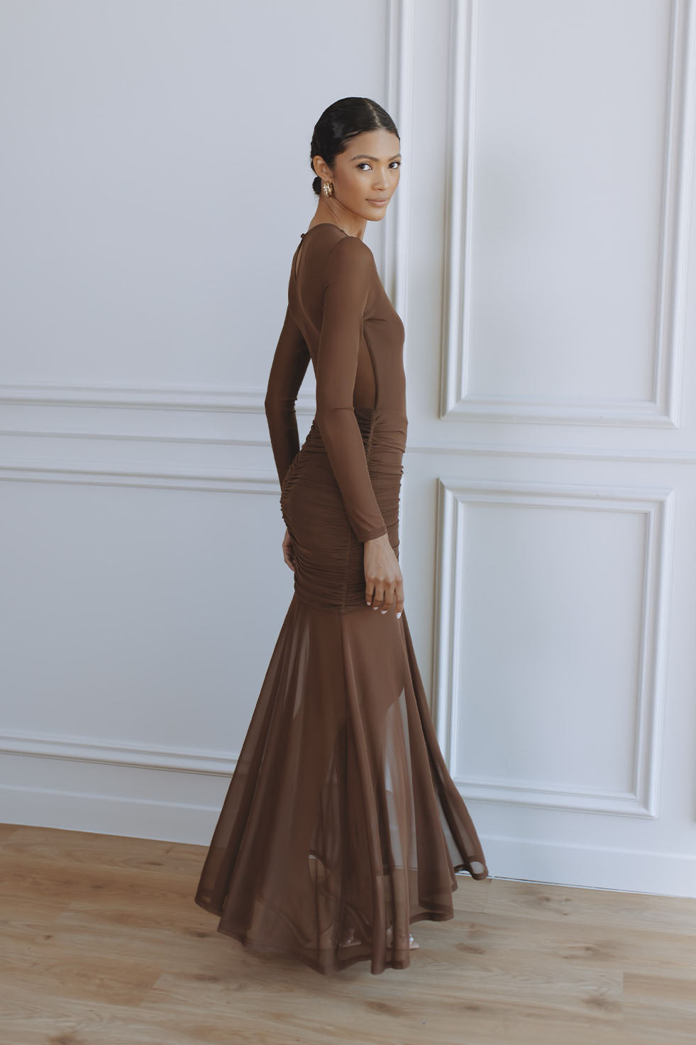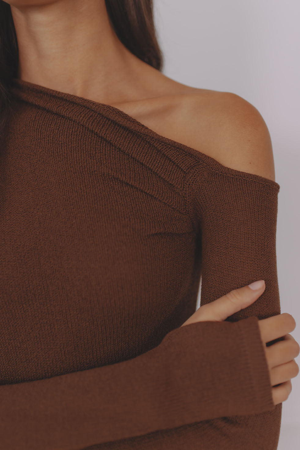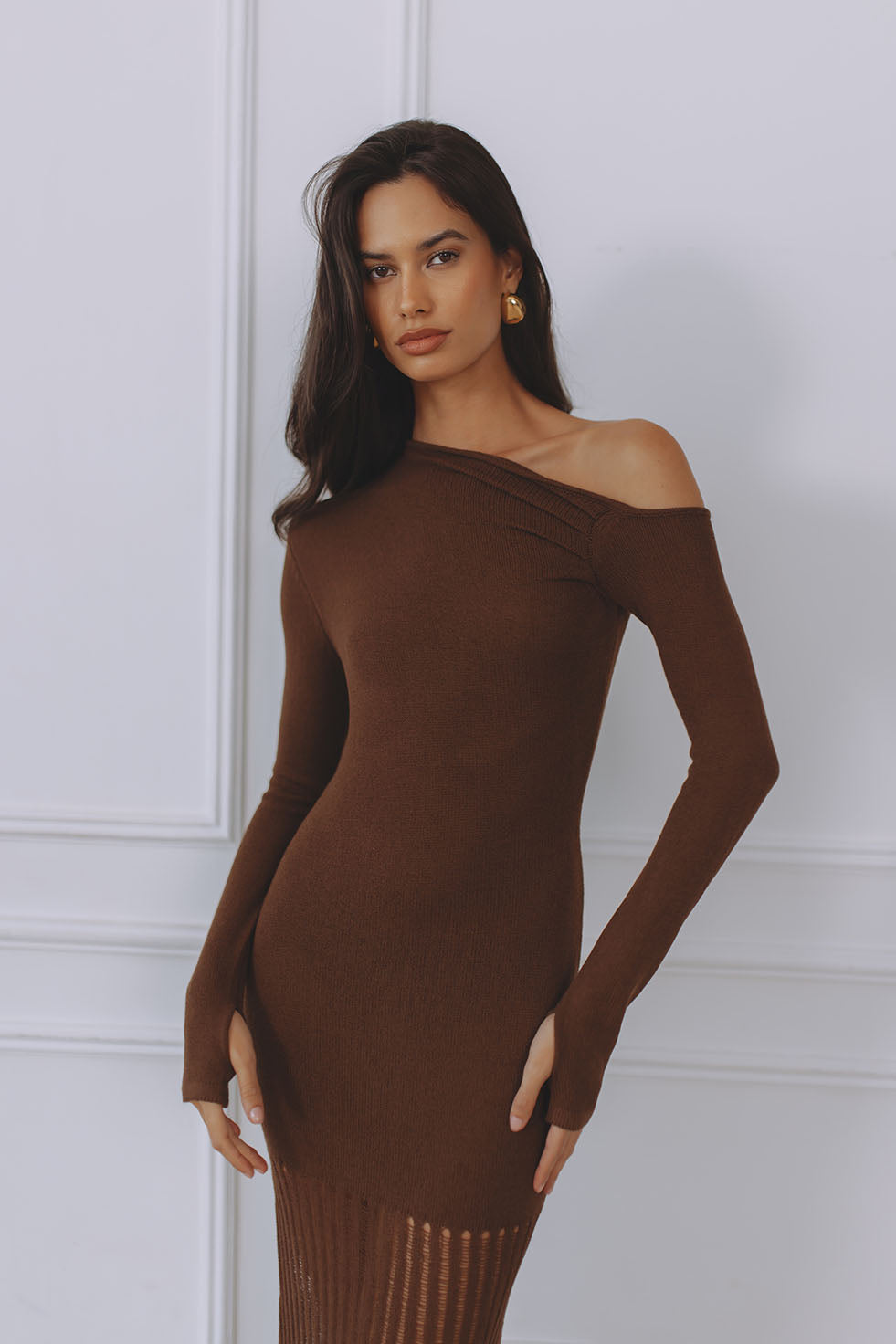 GRETA ONE SHOULDER KNIT MAXI DRESS - CHOCOLATE