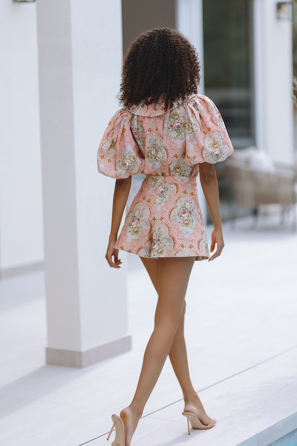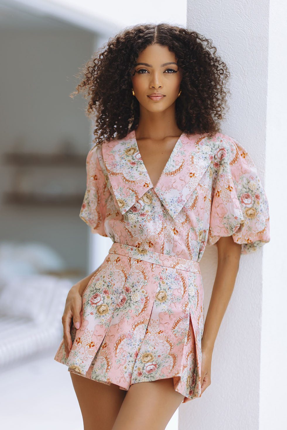 A romantic linen top adorned with the delicate Valentina Bloom print. Designed with soft puff sleeves and a statement collar, it pairs effortlessly with the matching skort for a feminine, polished look.