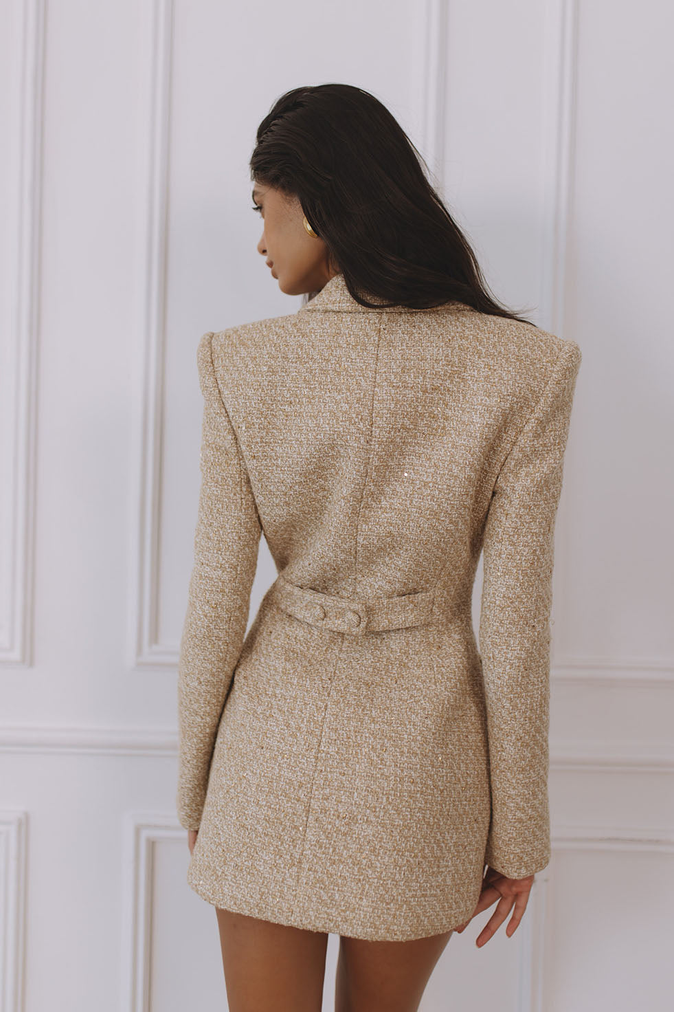 AMARA BOUCLE TUXEDO MINI DRESS - LIGHT GOLD