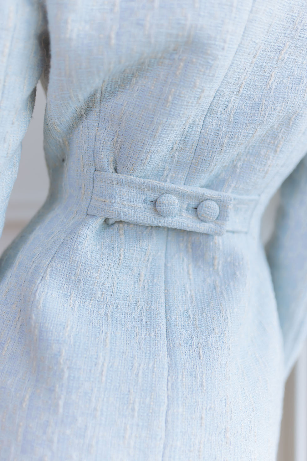 AMARA BOUCLE TUXEDO MINI DRESS - POWDER BLUE