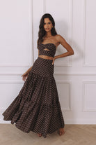 AYLA TIERED MAXI SKIRT - CHOC/LEMON POLKA