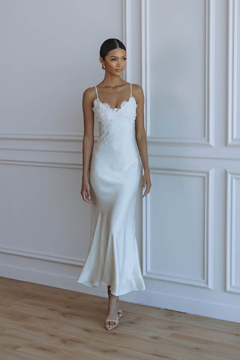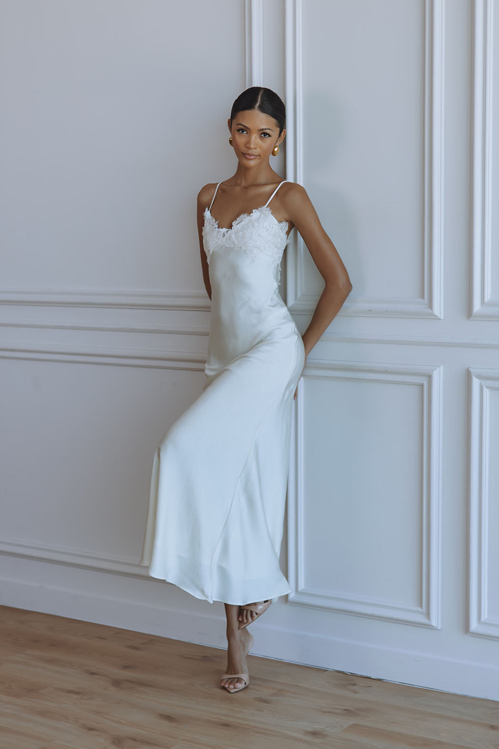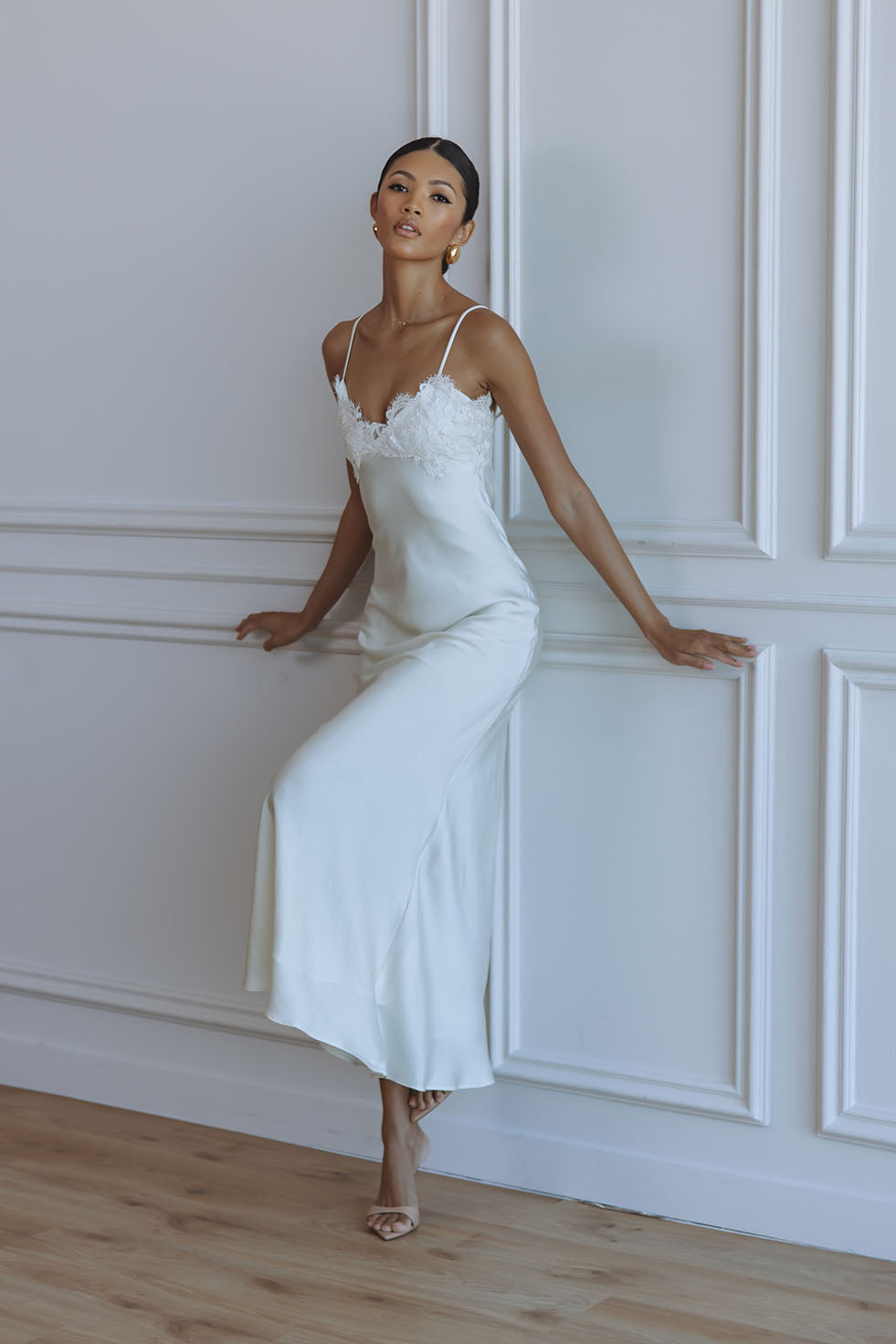 ELISAN LACE SATIN MAXI DRESS - IVORY