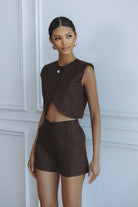 HADLEY LINEN VEST - BITTER CHOCOLATE