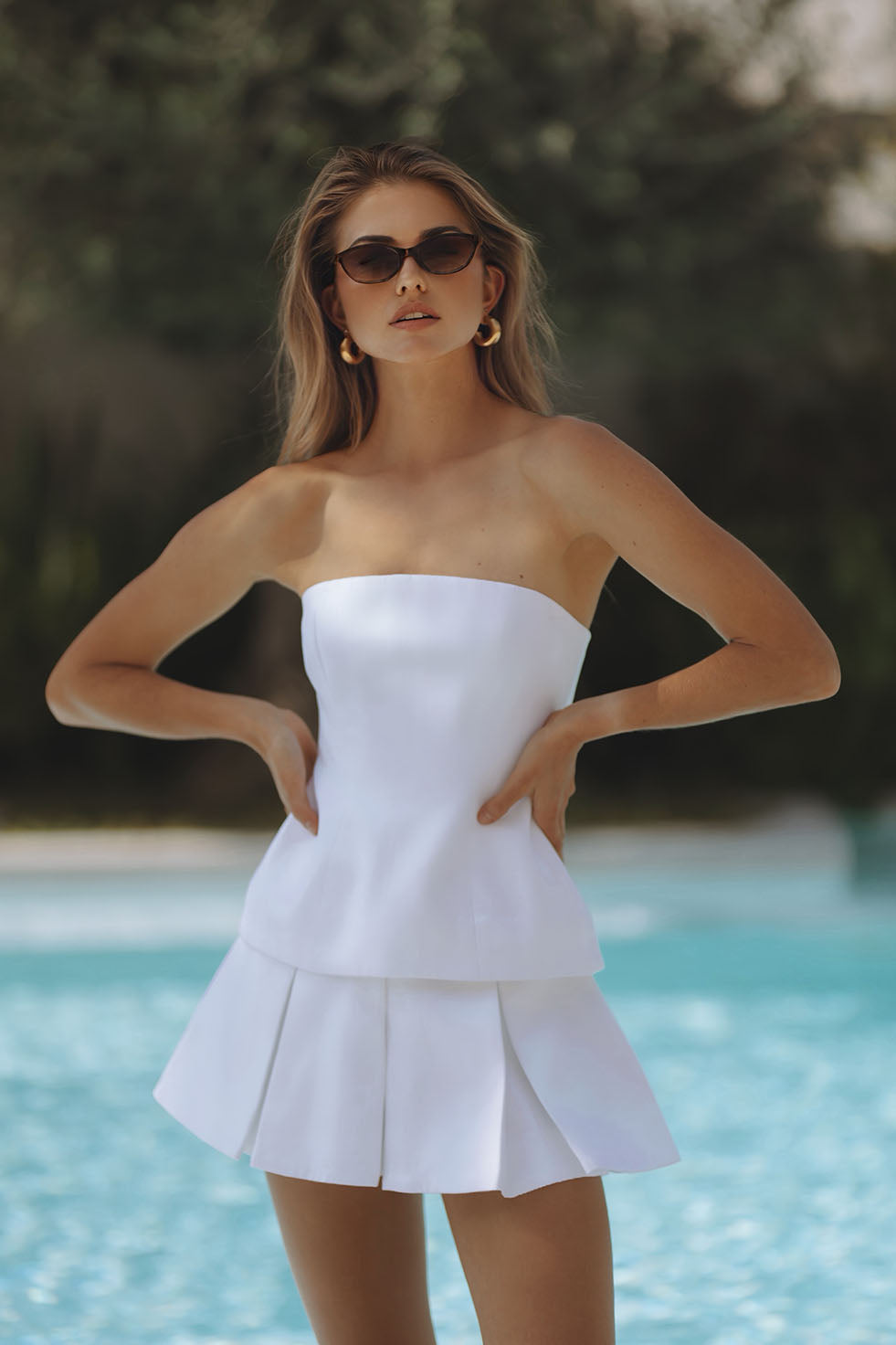 HELENIA PLEATED LINEN SKORT - ORCHID WHITE