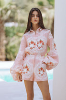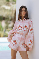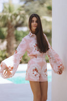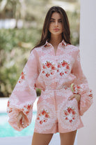 Softly romantic with a polished finish, the Jessica Linen Shorts in Rosette Cameo bring a fresh feminine touch to warm weather dressing. Designed in a blush toned floral cameo print, they pair effortlessly with the matching shirt for elevated daytime moments, vacation styling, and chic resort escapes.