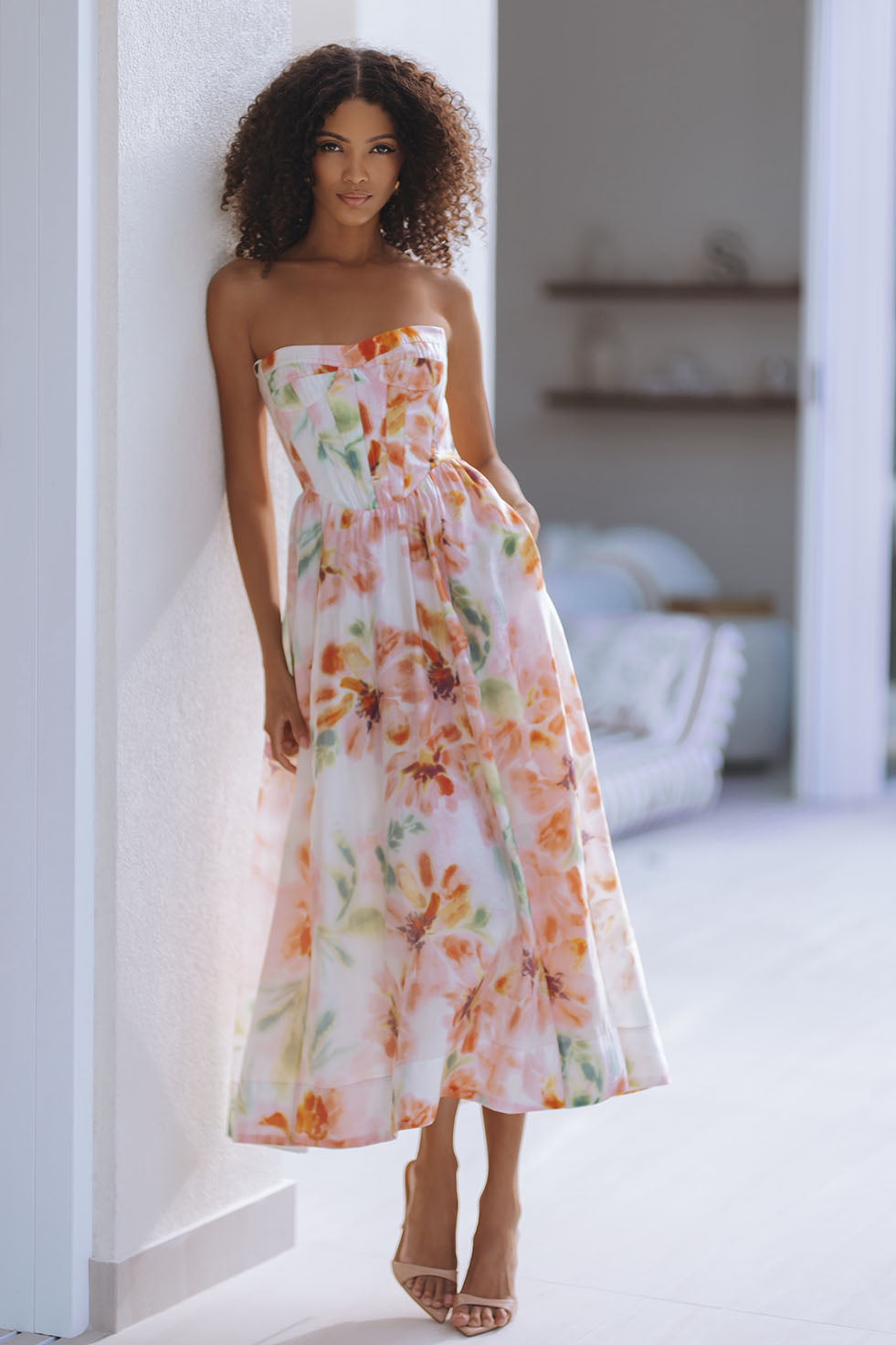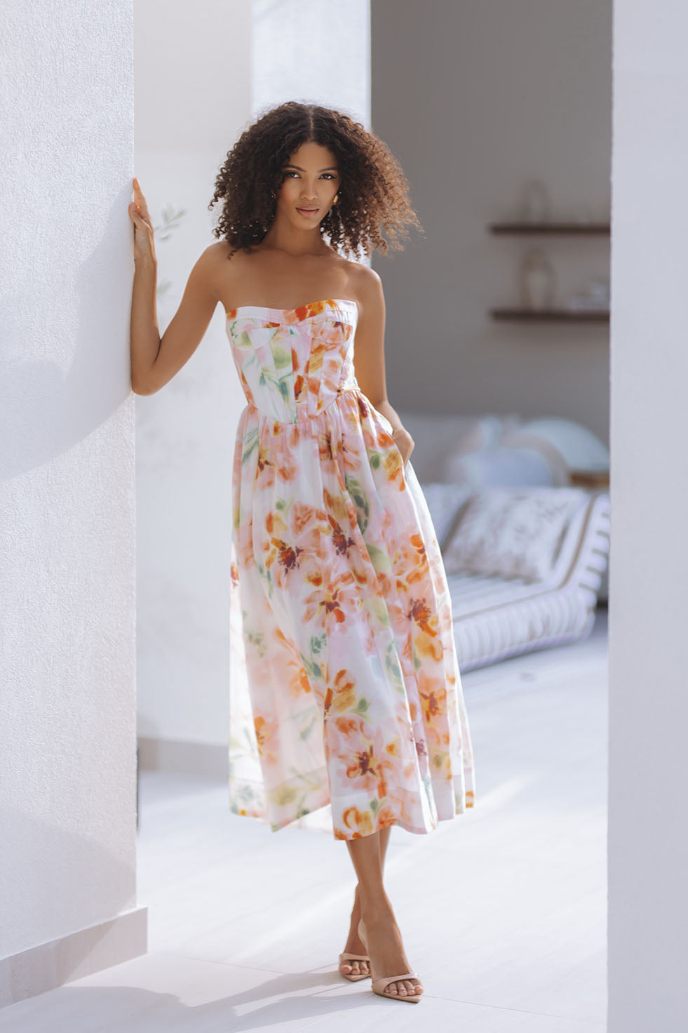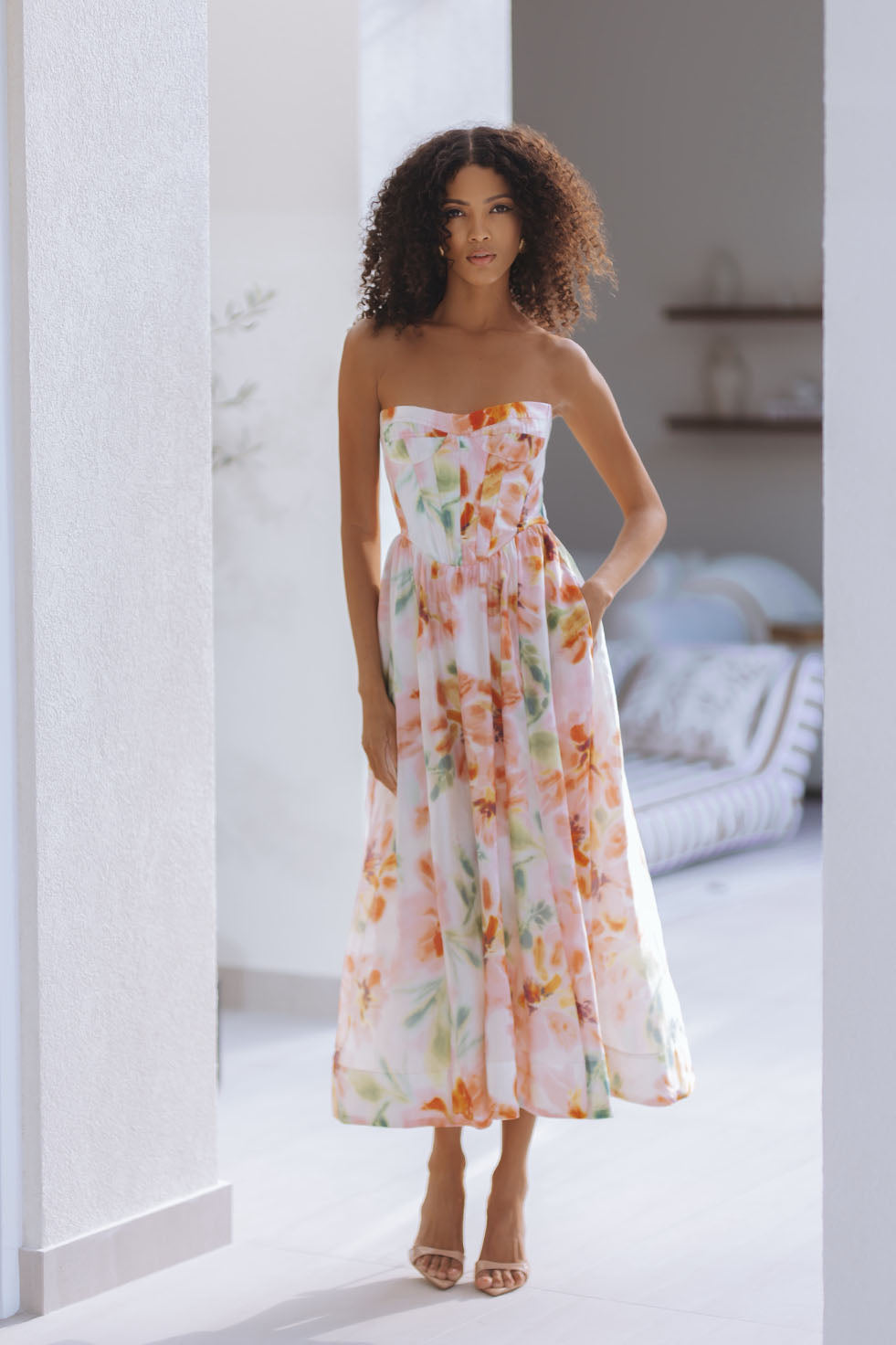 LOLA CORSET MIDI DRESS - PINK FLORAL
