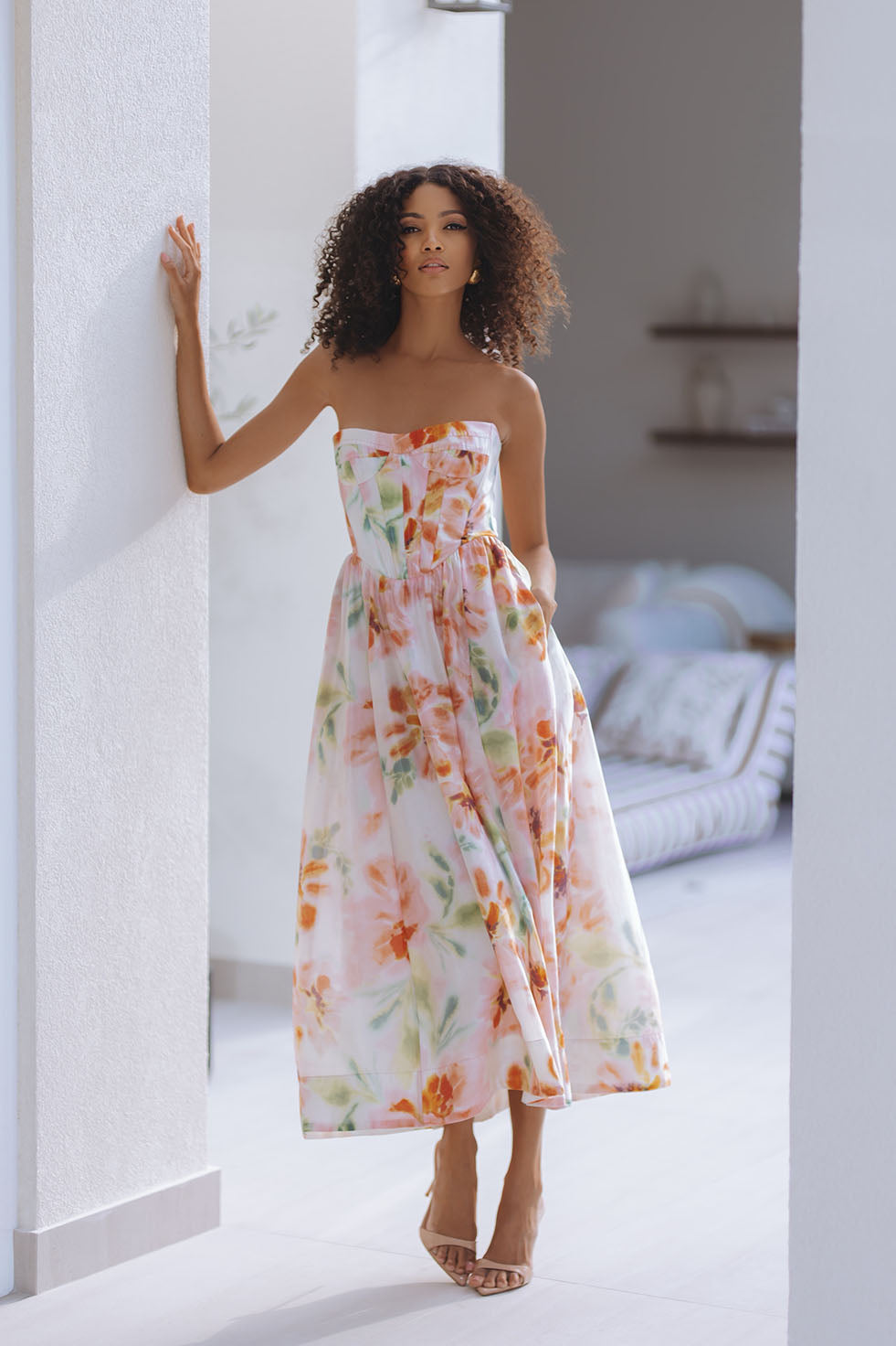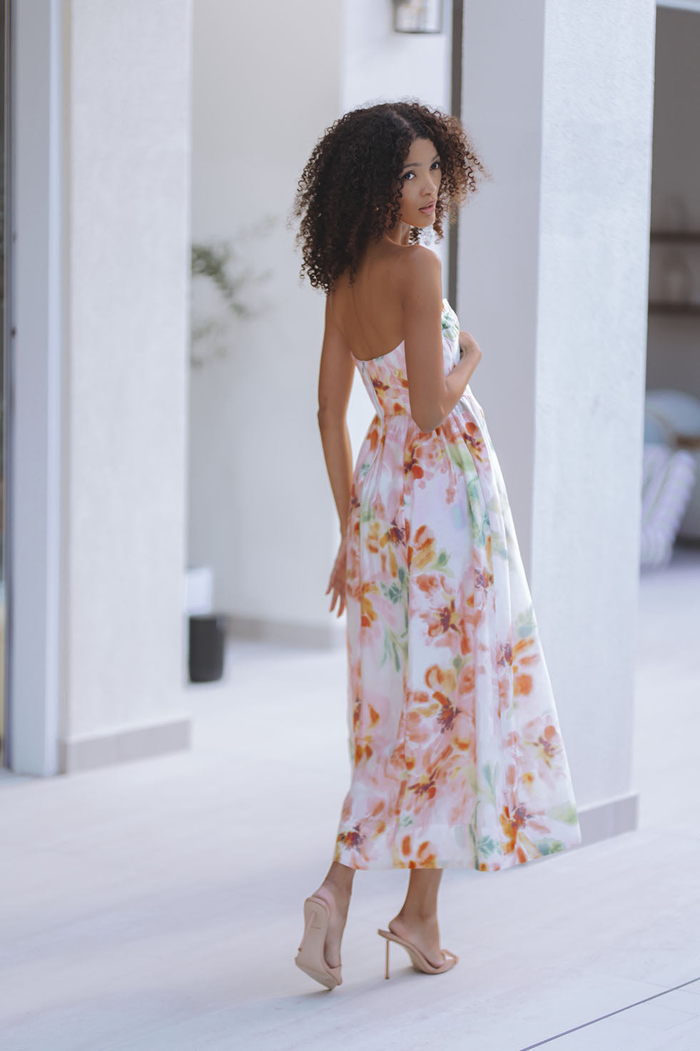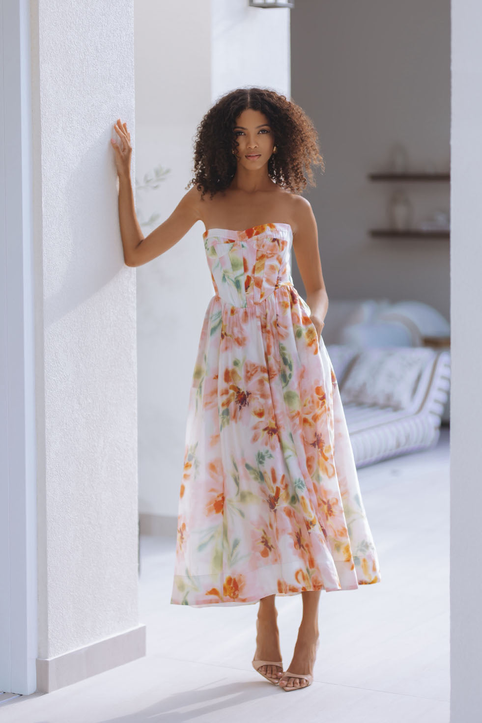 LOLA CORSET MIDI DRESS - PINK FLORAL