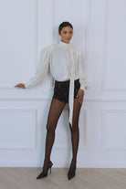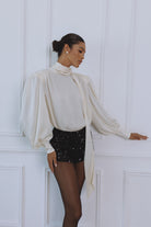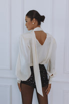 REVANA SATIN TIE NECK BLOUSE - IVORY