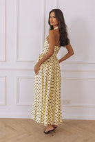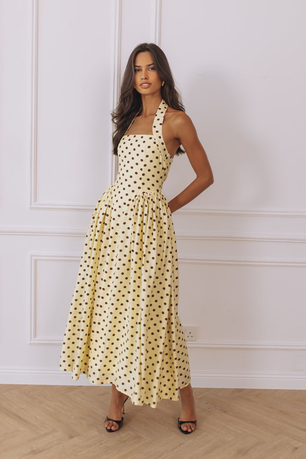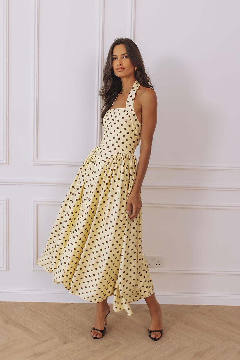 SAMMI HALTER MIDI DRESS - LEMON/CHOC POLKA