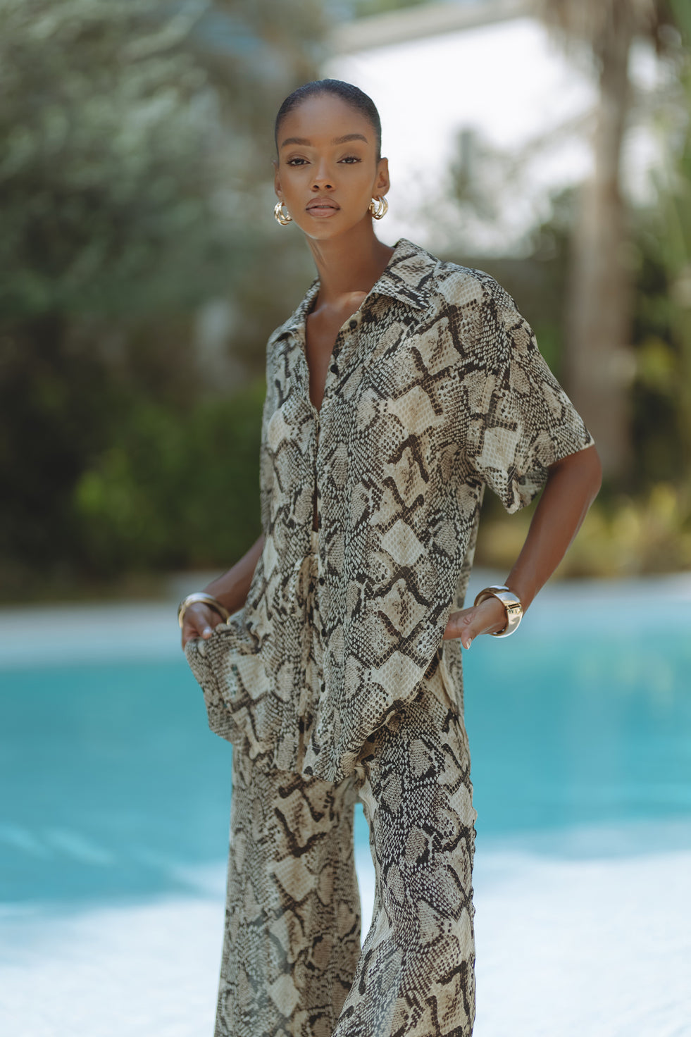 Wide-leg pants are the perfect choice when you need to add a little character to your outfit. They are ideal for triangular-shaped bodies. Wide-leg pants draw attention to your legs. You can complement them with well-fitted tops with minimal patterns.